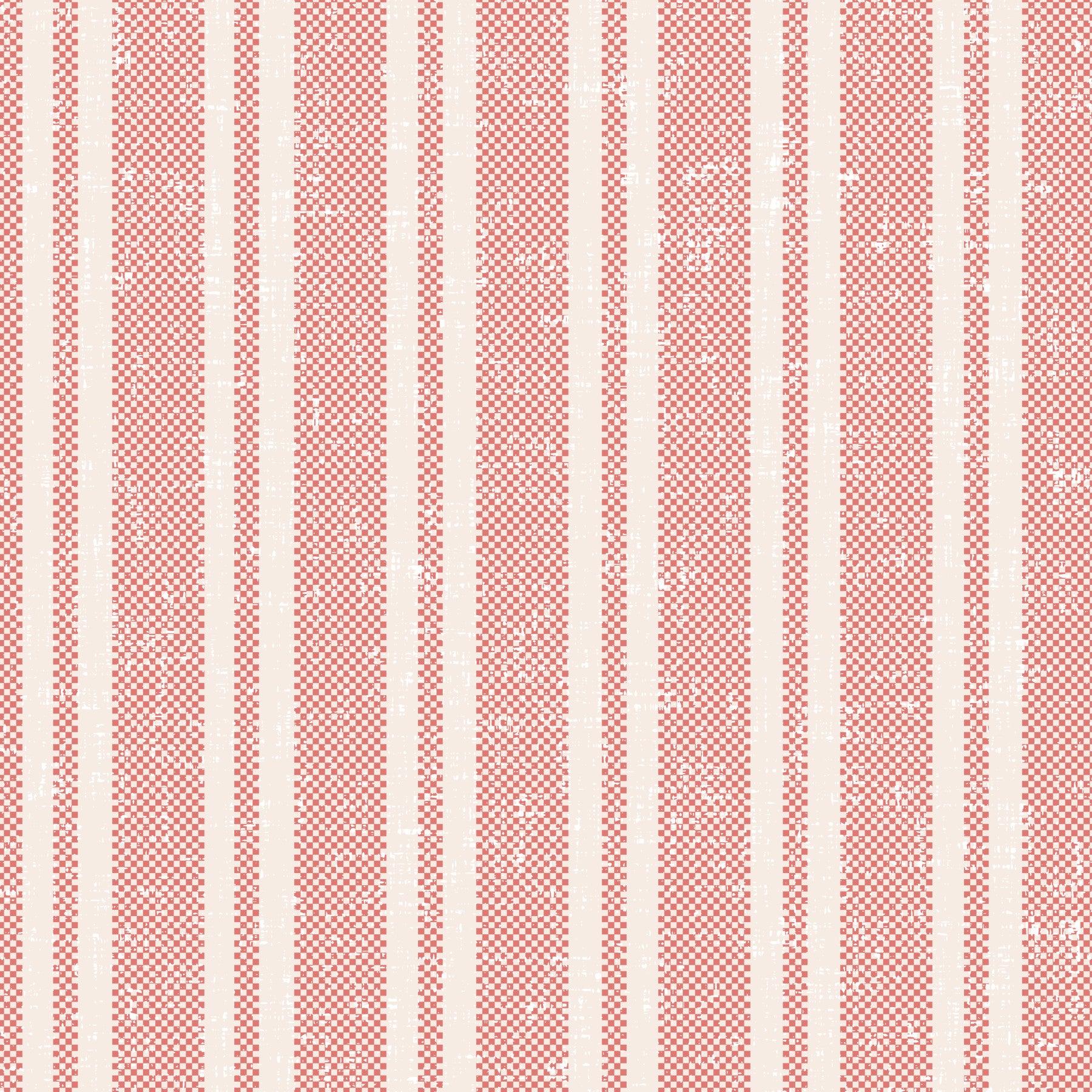 Embrace summer vibes with this vibrant 'Sunchair Stripe - Red' wallpaper. The design features a striking interplay of bold red and creamy off-white stripes, each subtly textured with a distressed, almost vintage, checkerboard pattern. This creates a unique blend of classic and contemporary aesthetics, perfect for adding a touch of playful sophistication to any digital device. The slightly worn effect lends a nostalgic charm, evoking images of sun-drenched days and relaxed summer afternoons. This wallpaper offers a captivating visual texture that is both eye-catching and calming, making it a versatile choice for various backgrounds and moods.
