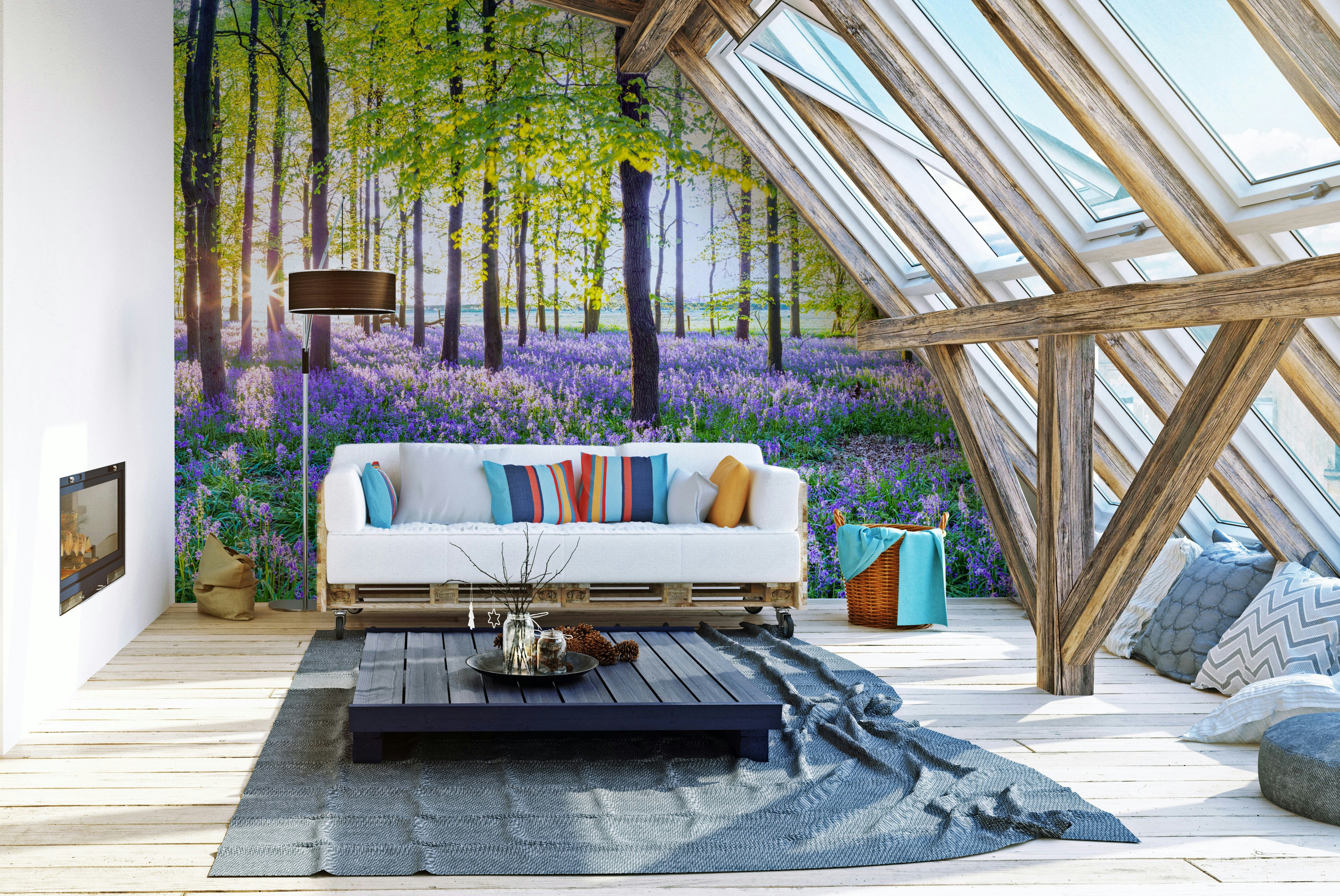 Violet bluebell carpet forest mural