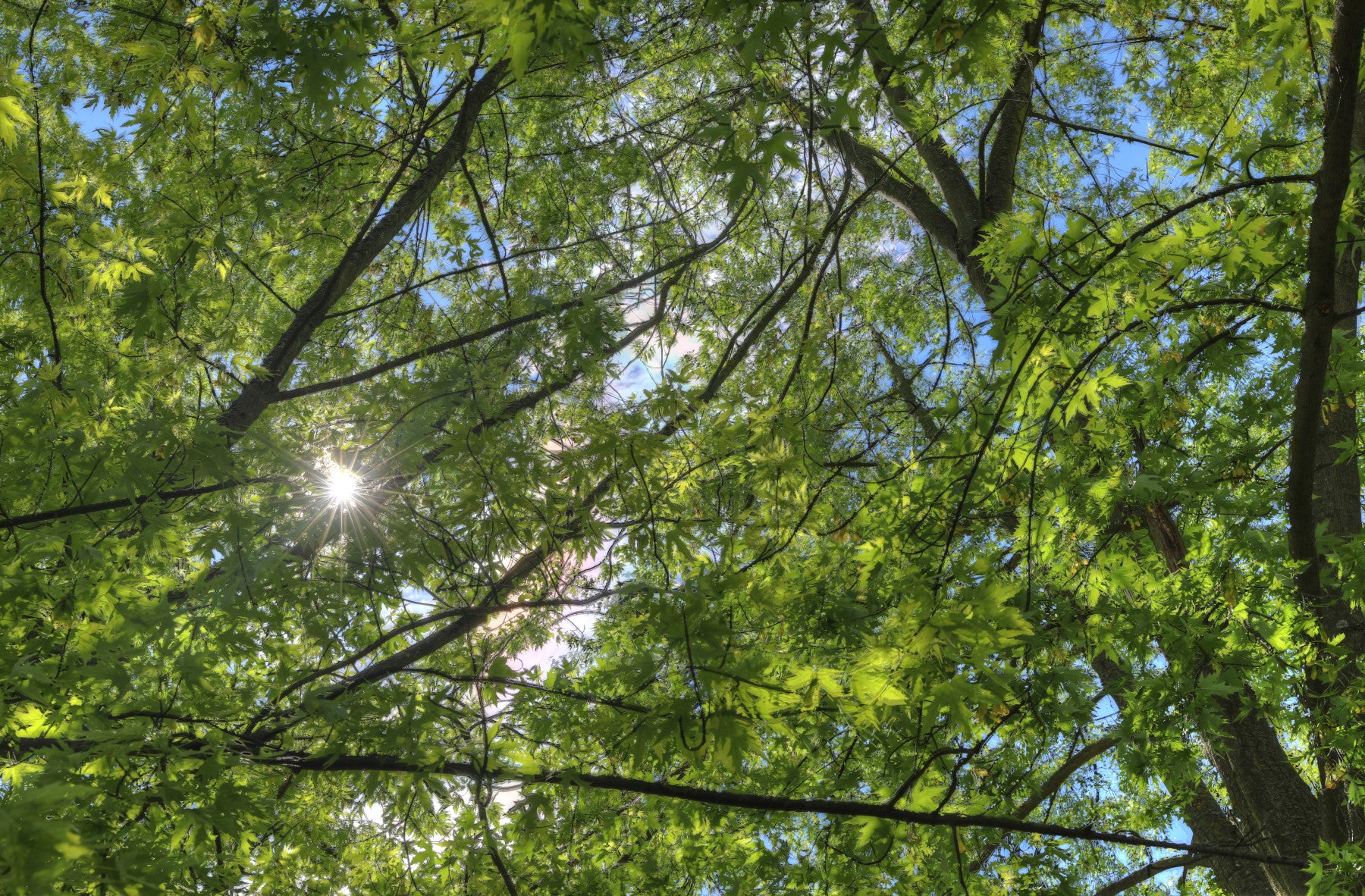 Serene and natural forest canopy scene.