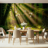 Transform your space with the serene beauty of a sun-drenched forest path. This captivating wallpaper for walls brings the tranquility of nature indoors, showcasing radiant sunlight filtering through lush green trees. The design features a winding path, inviting viewers to step into a peaceful woodland scene. Its vibrant greens and warm yellows create a calming, refreshing atmosphere, ideal for living rooms, bedrooms, or even home offices. This wallpaper effortlessly enhances the ambience of any room, making it feel brighter and more spacious. Let nature’s artistry adorn your walls and create a serene retreat within your home.