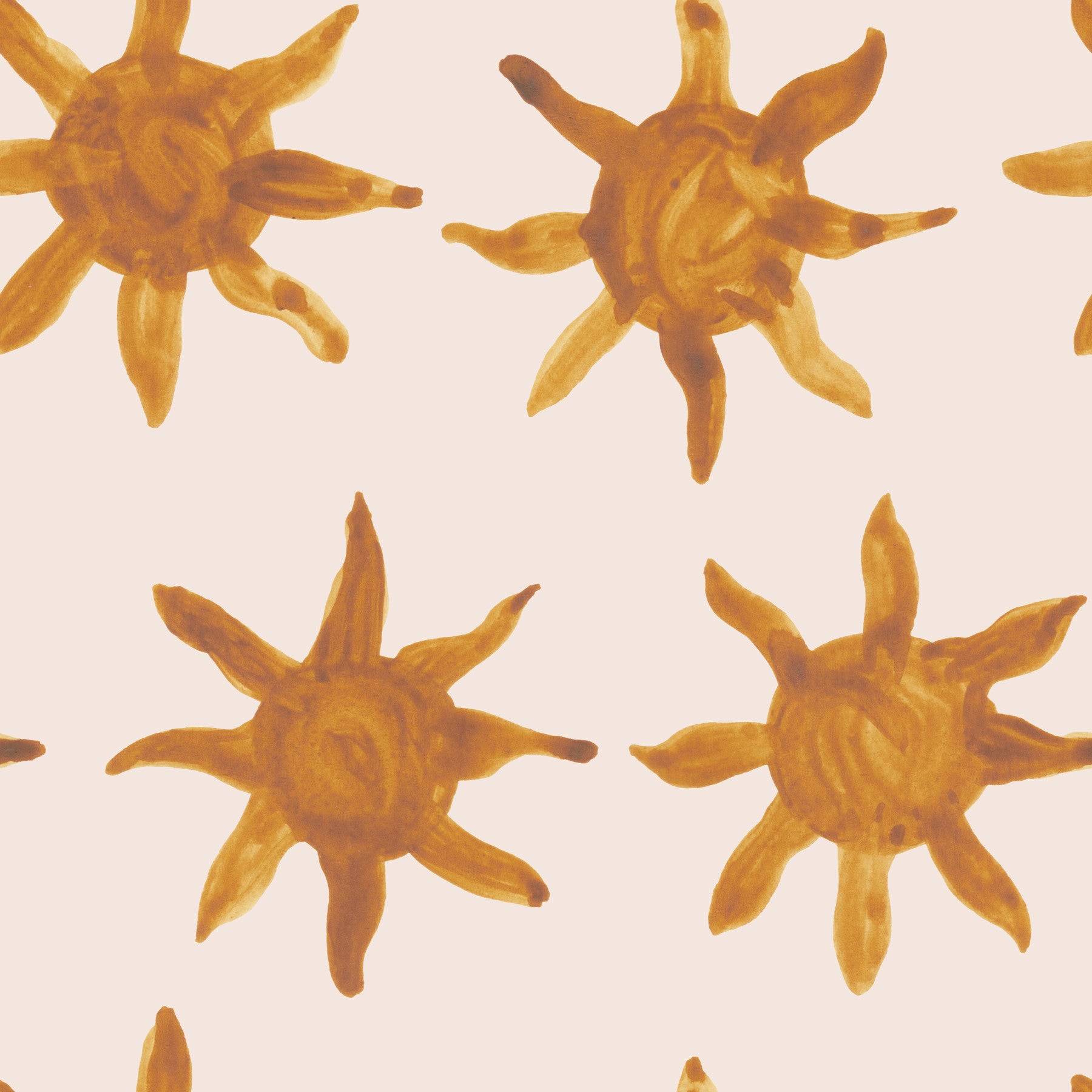 Bring a warm, artistic touch to your walls with this unique sun-inspired design. The pattern features bold, expressive brushstrokes in a muted gold hue, creating a hand-painted effect. This wallpaper for walls infuses any room with a cheerful and comforting ambience. It complements living rooms, bedrooms, or even a sunny kitchen, adding depth and personality. The seamless repeat allows for a consistent aesthetic throughout your space.
