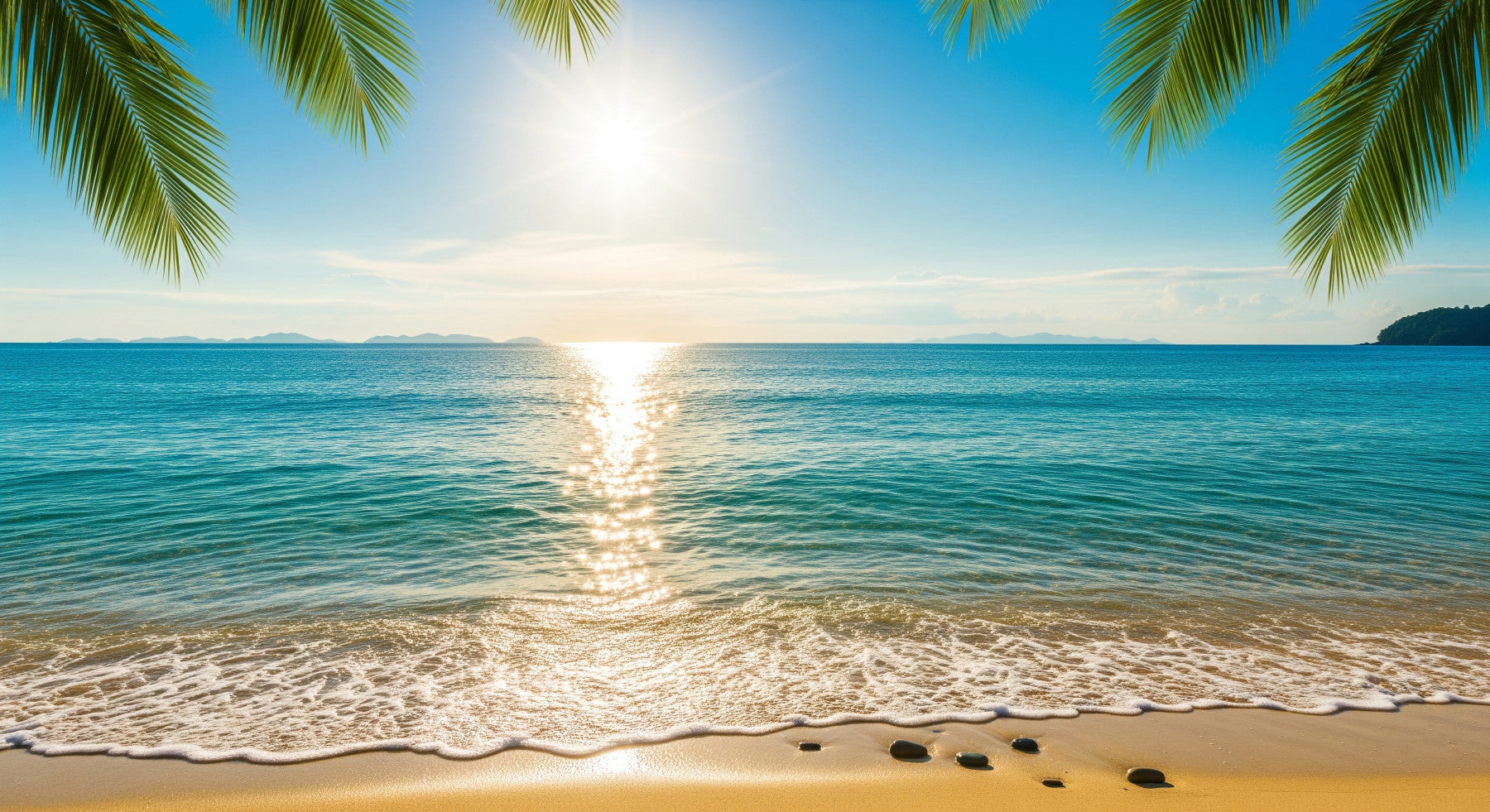 Sunny Coastal Calm Wall Mural in bedroom, gentle ocean colours, restful wall