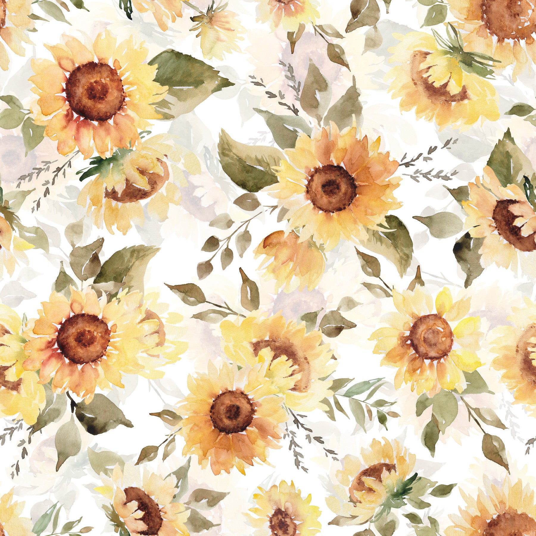 Golden yellow Sunny Watercolor Sunflowers decor paper.