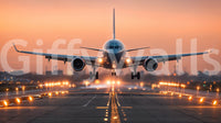 Experience the thrill of “Sunrise Arrival,” a breathtaking piece of art for your walls. This captivating image captures the precise moment an aircraft gracefully descends, kissing the runway just as the sun begins its ascent. The warm, radiant hues of the dawn sky bathe the scene in a golden glow, casting a serene yet powerful ambiance. Runway lights stretch into the distance like guiding stars, leading the eye towards the approaching marvel of modern engineering. The image offers a unique perspective, placing you right on the tarmac amidst the anticipation of a new day. Perfect for spaces that crave a touch of adventure and the promise of journeys to come, this addition elevates any room with its striking visual story and optimistic spirit. Infuse your décor with the energy of new beginnings and the allure of flight.