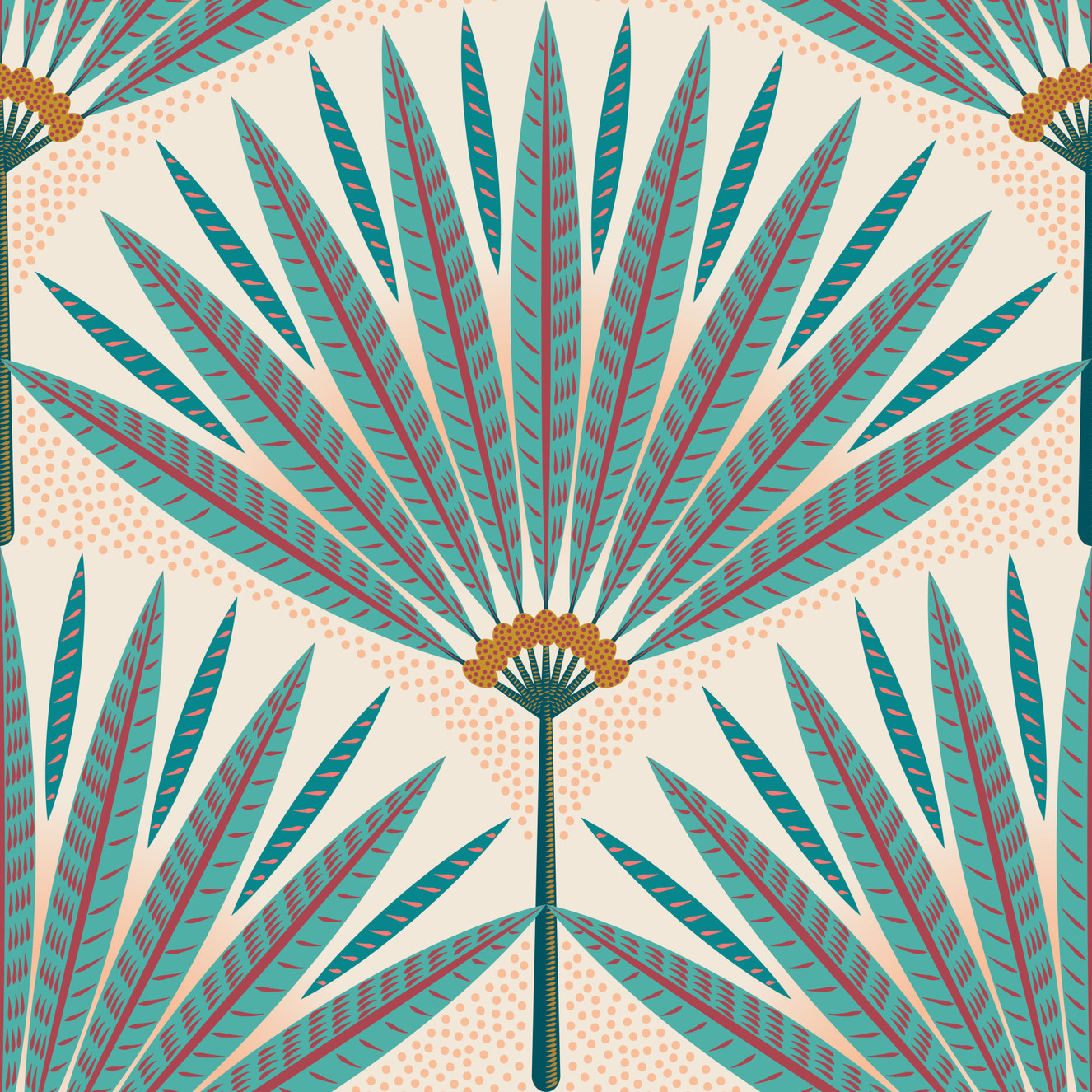 Bathe your walls in the warm glow of 'Sunset Palm Paradise'. This wallpaper features a stylized depiction of palm leaves in sunset hues of peach, coral, and cream. The design is a seamless pattern, perfect for creating a tranquil and calming atmosphere in any room. The subtle texture and soft color palette create a sense of serene sophistication. Whether in a bedroom, living room, or even a hallway, this wallpaper will transform your space into a peaceful oasis. The artistic, hand-drawn quality adds a touch of unique charm, making it a stunning focal point for your home decor.