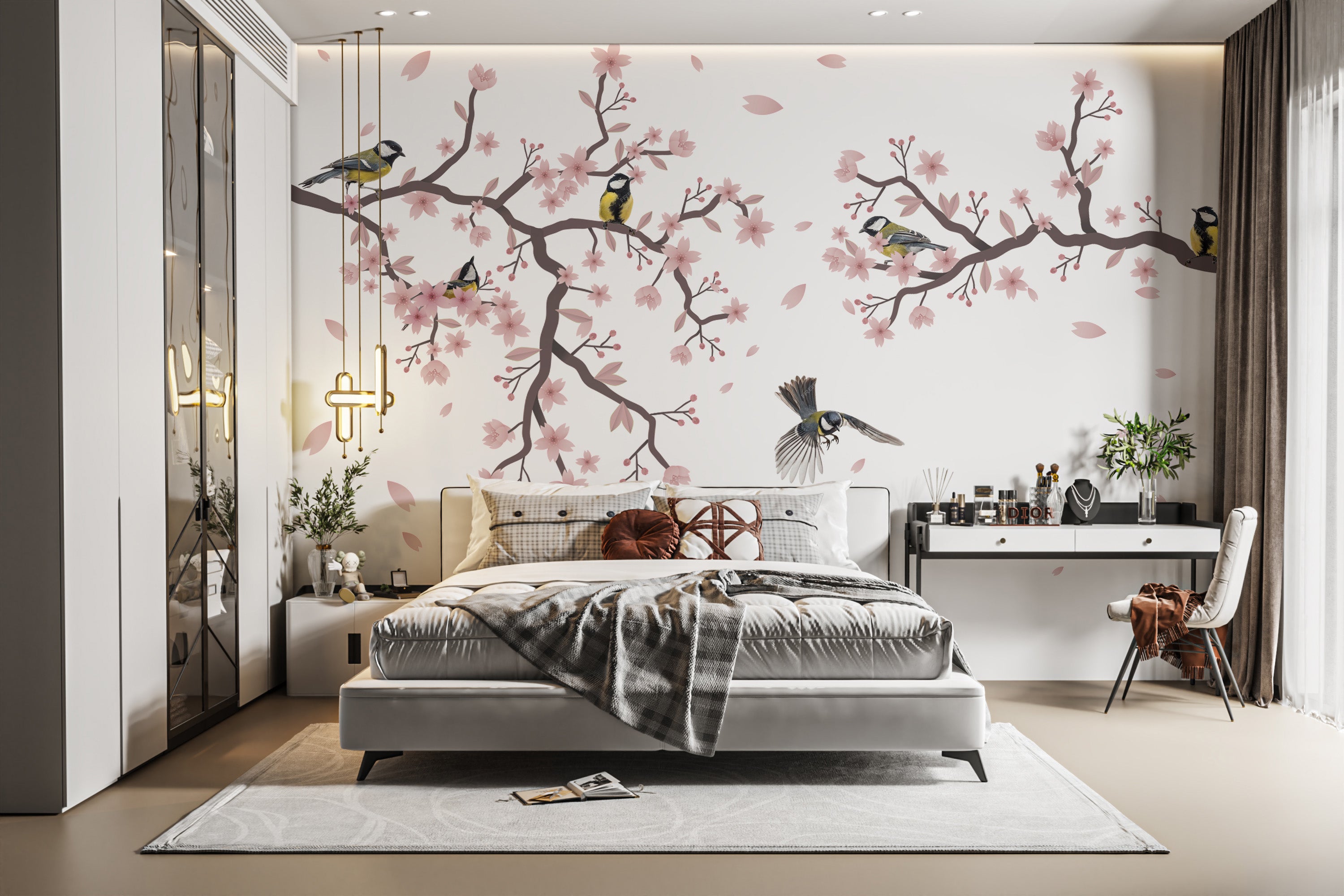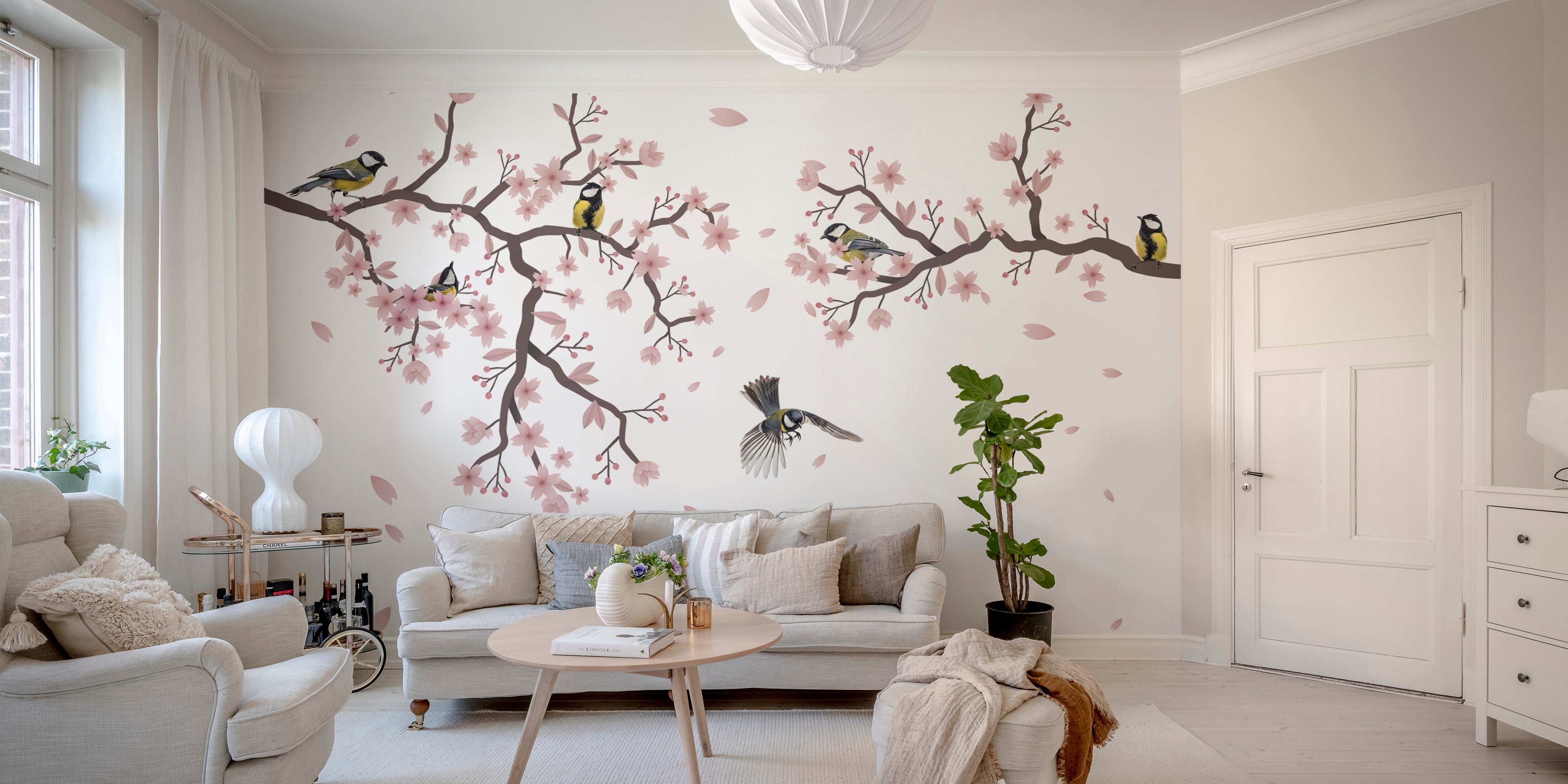 Sunset Titmouse Cherry Blossom Mural for calm spaces
