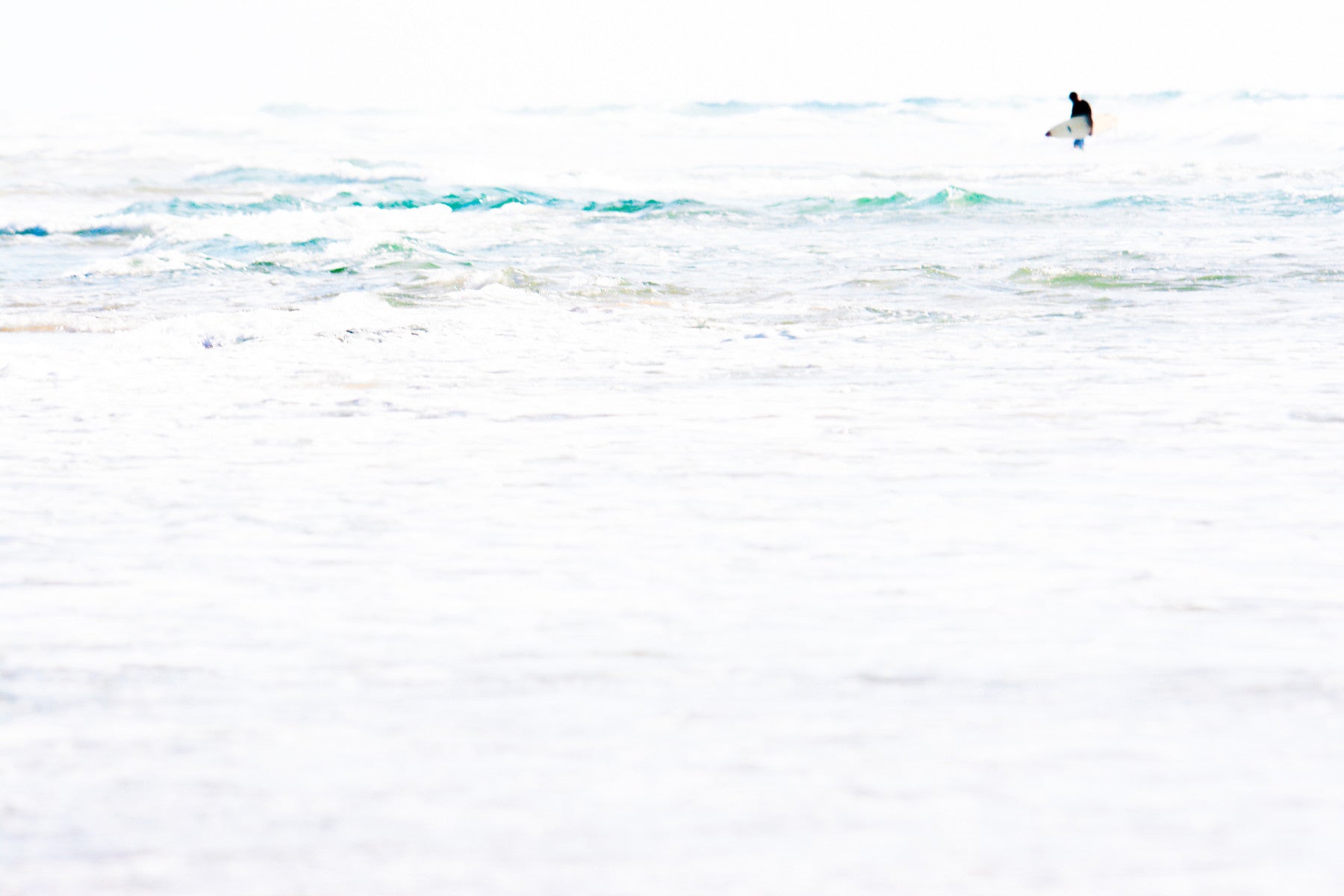 Embrace the minimalist tranquility of the ocean with Surfer. This captivating wallpaper captures a solitary surfer silhouetted against a vast expanse of sparkling white water, creating a sense of serene adventure. The subtle play of light on the waves and the distant figure evoke a feeling of peace and freedom, offering a calming escape from the everyday. The crisp, clean aesthetic makes it a perfect fit for any screen, adding a touch of coastal charm and understated elegance to your digital space. Imagine the fresh sea air and the rhythmic crash of waves with this stunning piece. Let "Surfer" bring the spirit of the ocean to your fingertips and inspire a moment of reflection in your busy day. This wallpaper is perfect for anyone seeking a calming and visually striking background.