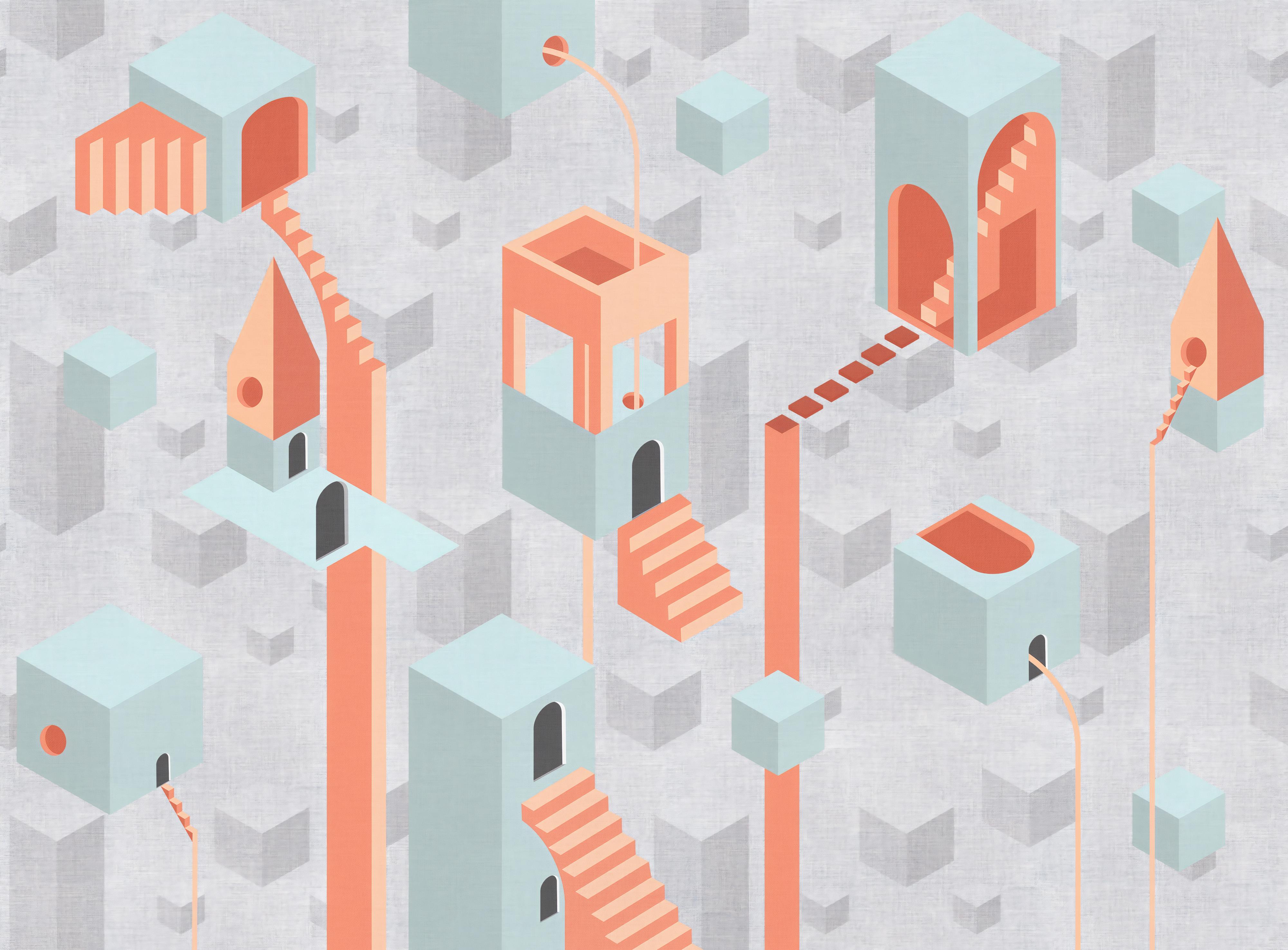 Bold Surreal Geometric Architecture Wallpaper in Isometric Art