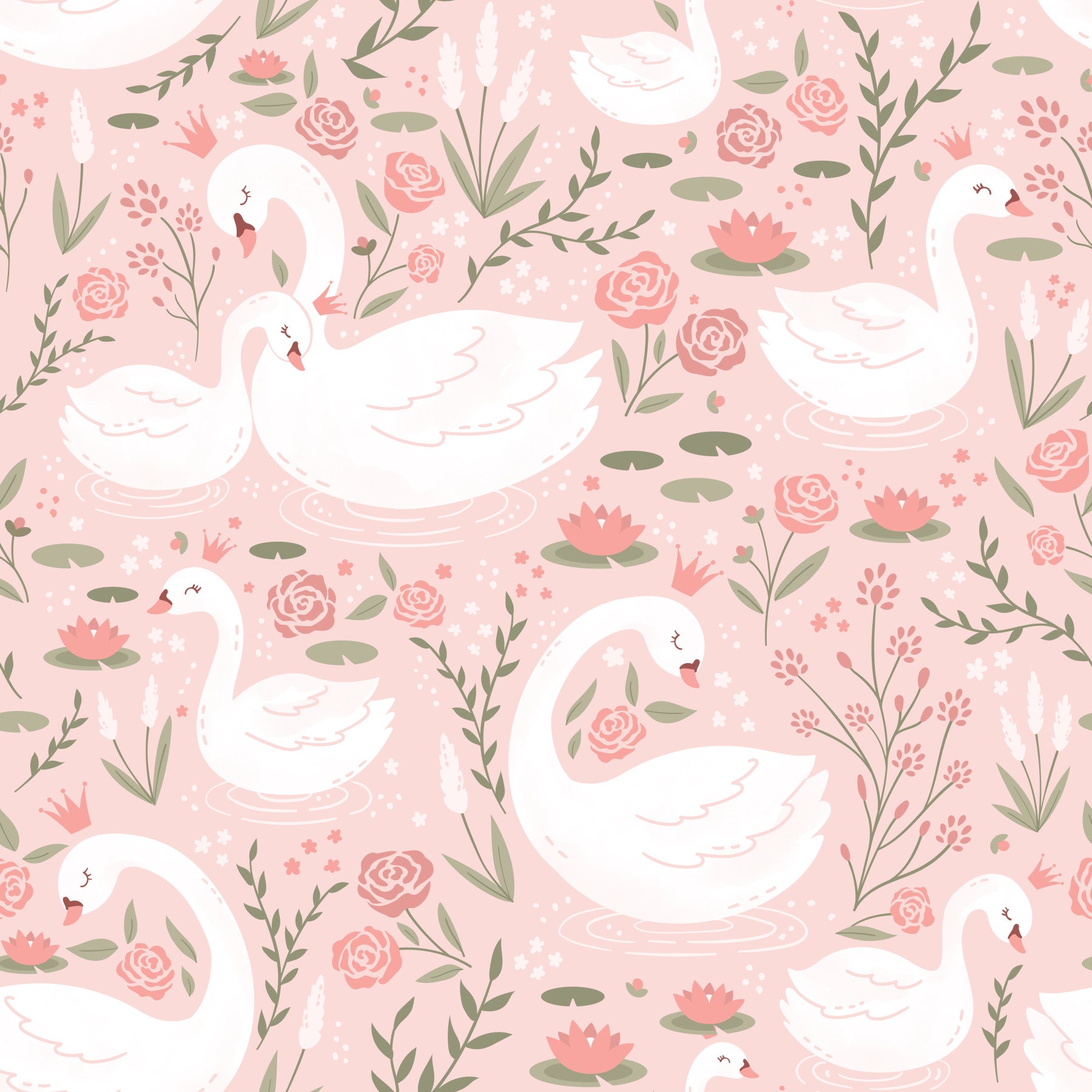 Transform any space into a tranquil retreat with this charming swan-themed wallpaper. Featuring elegant white swans, blush-toned roses, and serene water lilies, all set against a soft pink canvas, it breathes life into any room. Designed as wallpaper for walls, it provides an enchanting backdrop ideal for a nursery, a child's bedroom, or even a powder room. The delicate floral accents and graceful swans create a soft, dreamy feel, turning the room into a calming, elegant paradise. Add a touch of magic to your interiors.