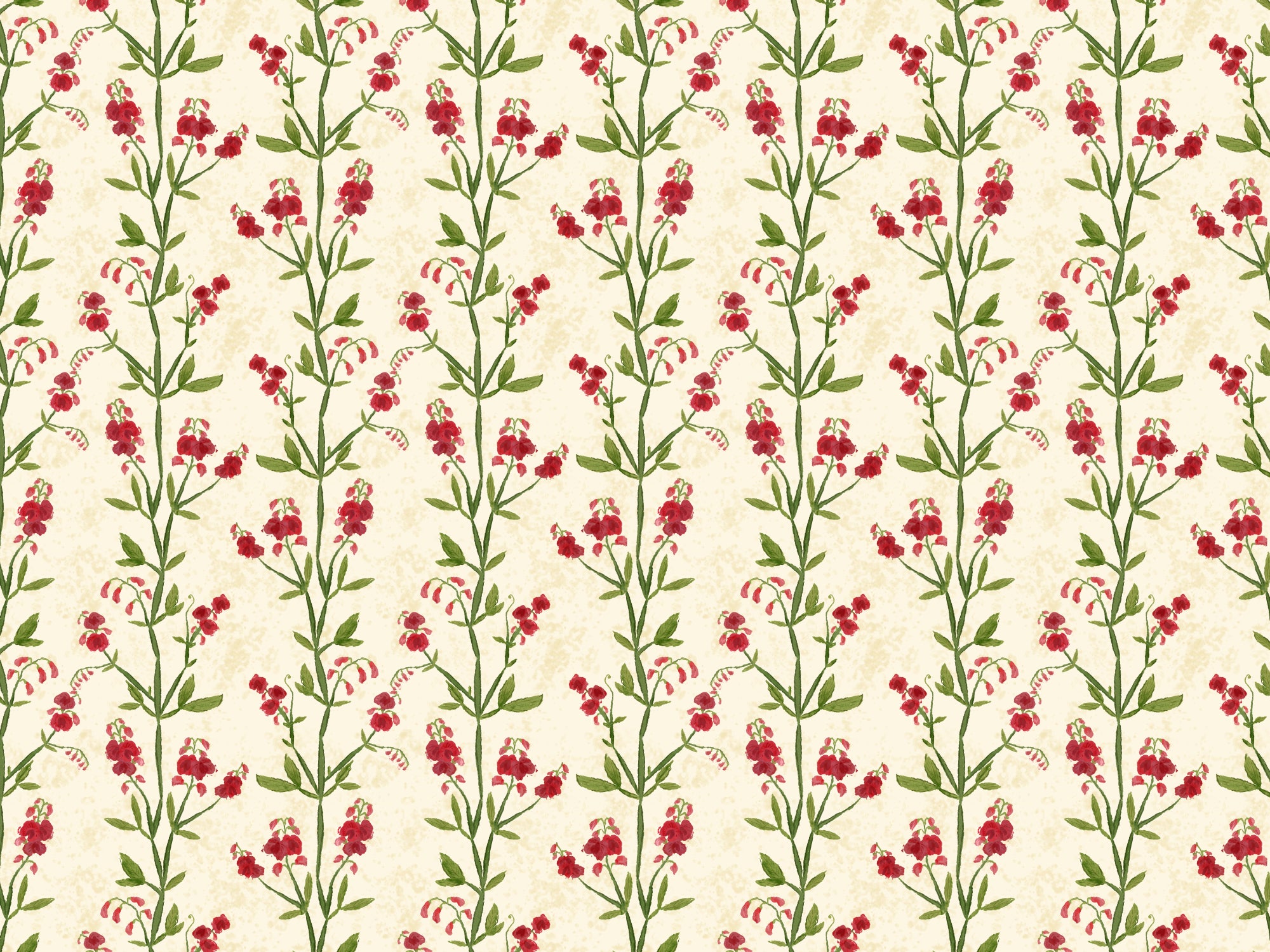 Floral sweet peas wallpaper with rich magenta leaf accents.