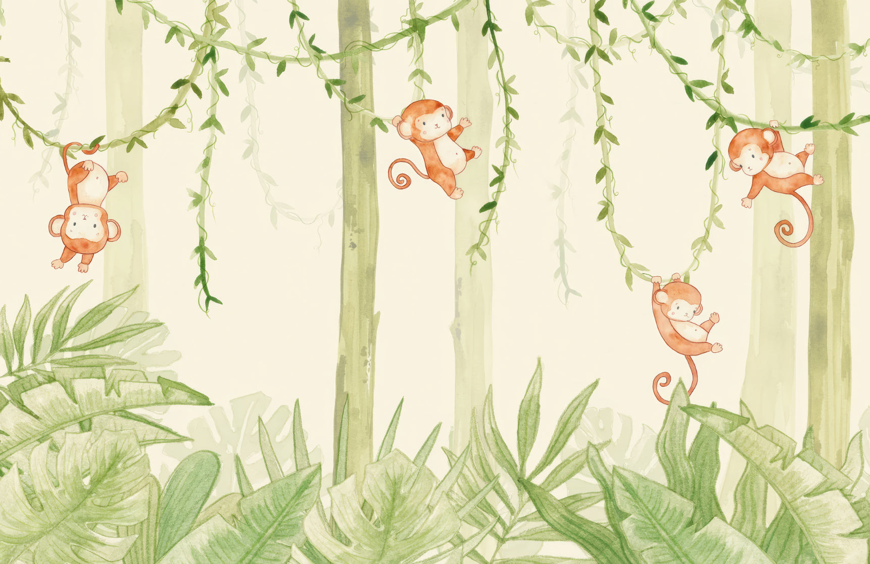 Swinging monkey wallpaper for playful decor