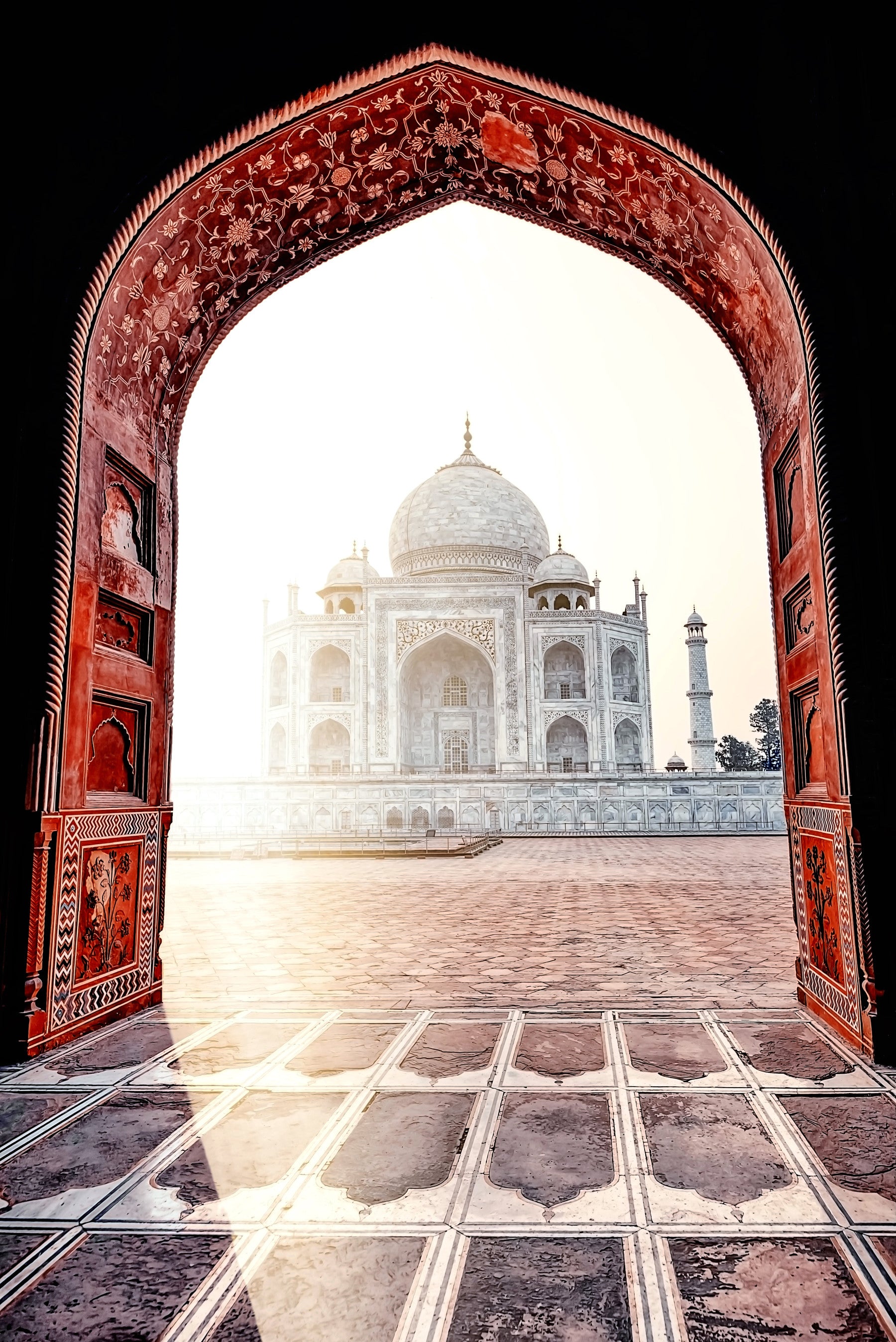 A contemplative Taj Mahal vista wallpaper mural for a feature wall.