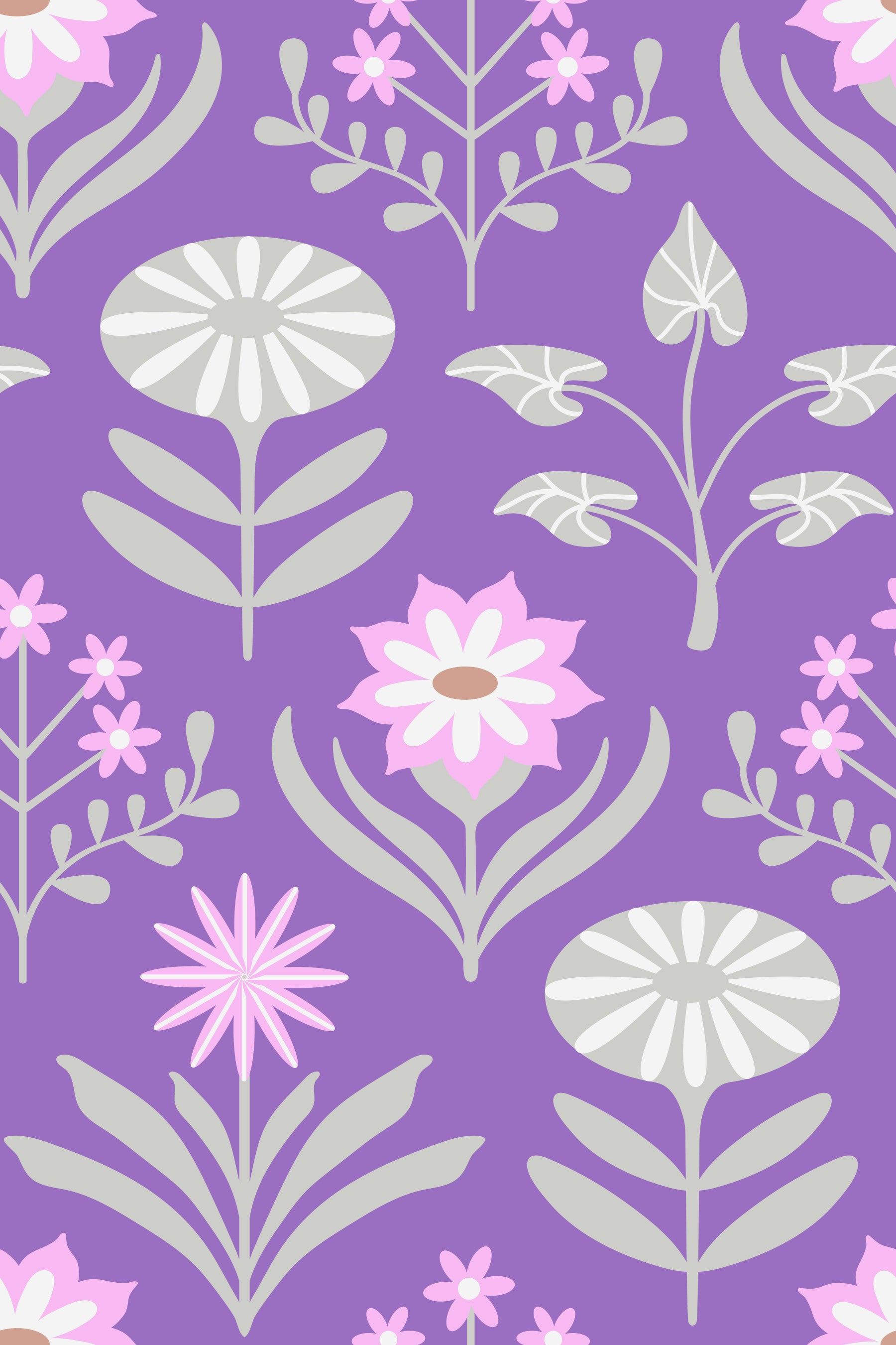 Tami Mid Century Modern Scandi Retro Floral Cottage Pink Gray Purple Wallpaper.
