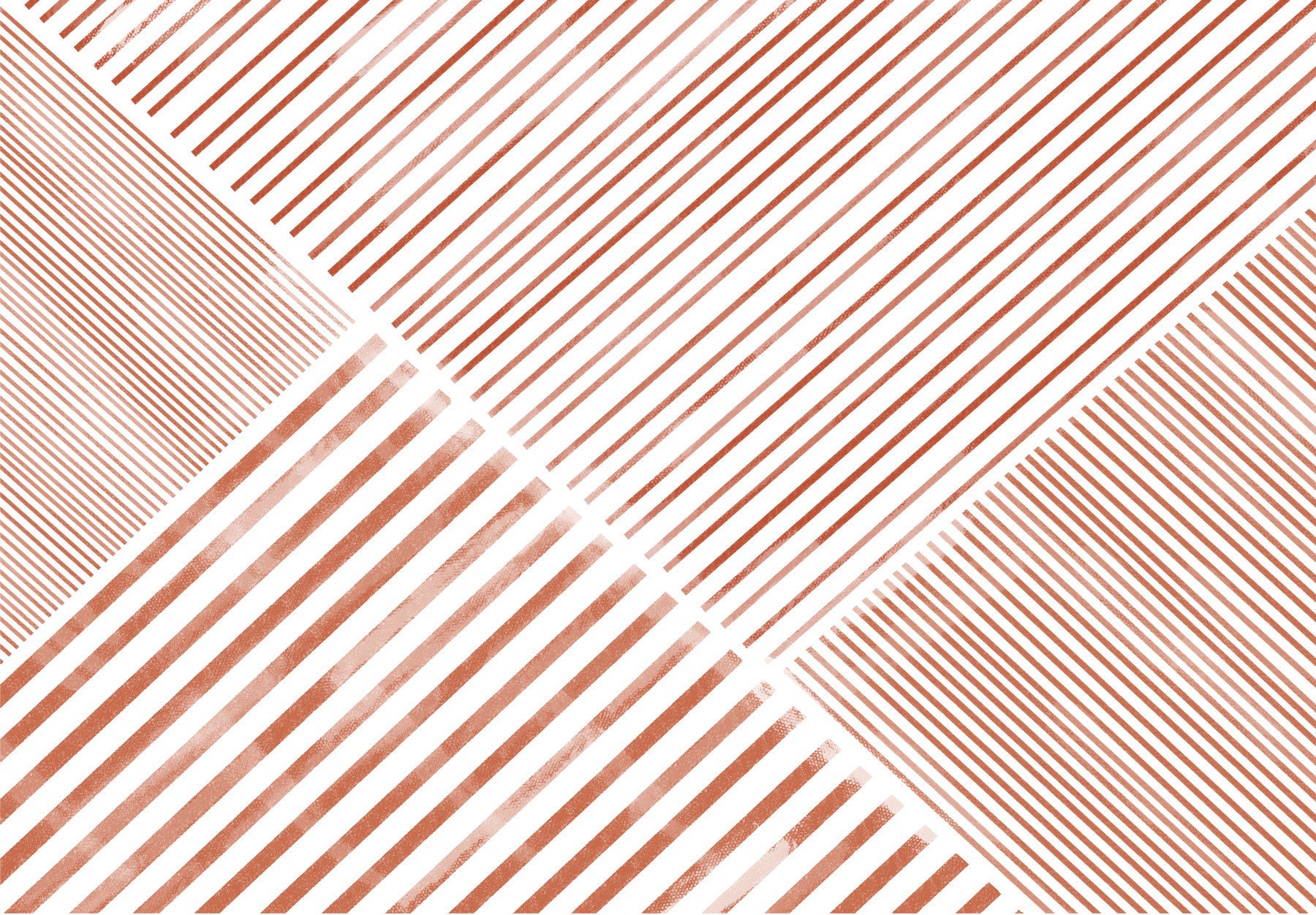 Introduce a touch of earthy charm to your home with this geometric pattern. Diagonal lines run across a white background, generating a sense of movement and visual intrigue. The terra cotta hues bring warmth and depth. This stylish wallpaper for walls adds a layer of sophistication to living rooms, dining areas, and bedrooms. The pattern complements various design styles, from modern to minimalist, offering a welcoming atmosphere.