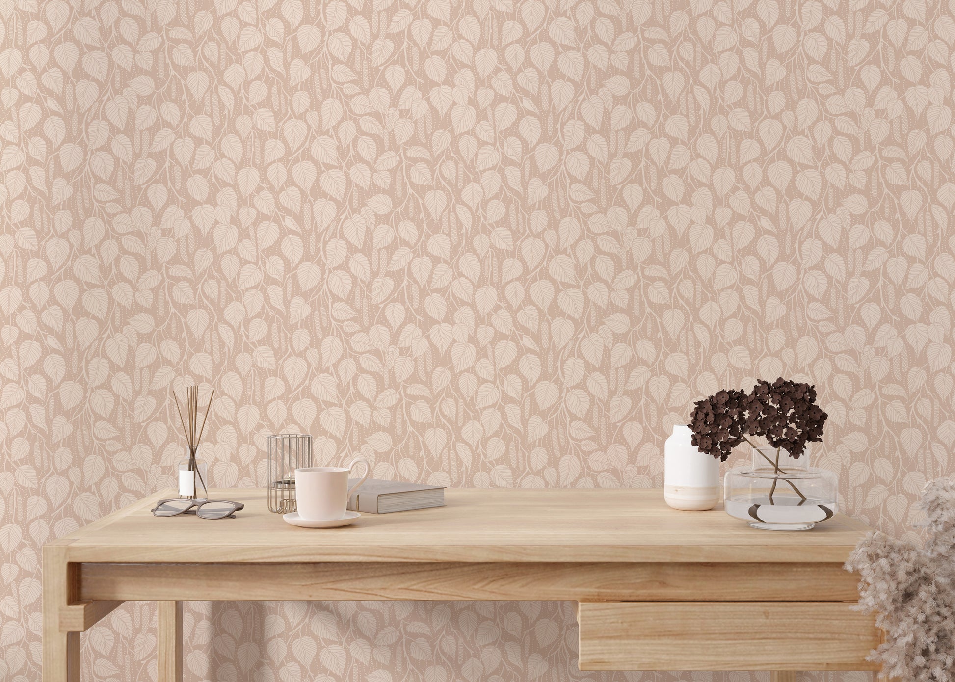 Embrace the serene beauty of nature with this "Terra-Toned Dewy Birch Branches" wallpaper. Delicate, off-white birch leaves and catkins are artfully arranged against a soft, earthy beige background. The detailed linework creates a textured, almost embossed effect, suggesting a subtle dewiness on the leaves. A gentle scattering of tiny dots adds depth and visual interest, enhancing the overall peaceful and calming atmosphere. This wallpaper is perfect for creating a tranquil and sophisticated ambiance in any digital space, bringing a touch of natural elegance to your desktop or mobile device.