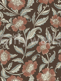 Journey through a landscape of 'Terracotta Trail', a wallpaper design evoking a sense of serene exploration. The rich terracotta tones of the watercolor flowers intertwine with delicate, muted green leaves on a deep brown canvas. Each bloom is rendered with artistic finesse, showcasing a unique blend of hand-drawn elegance and a tranquil, almost meditative quality. This wallpaper design is ideal for those seeking a subtle yet impactful way to introduce nature-inspired style and quiet sophistication into their living spaces.