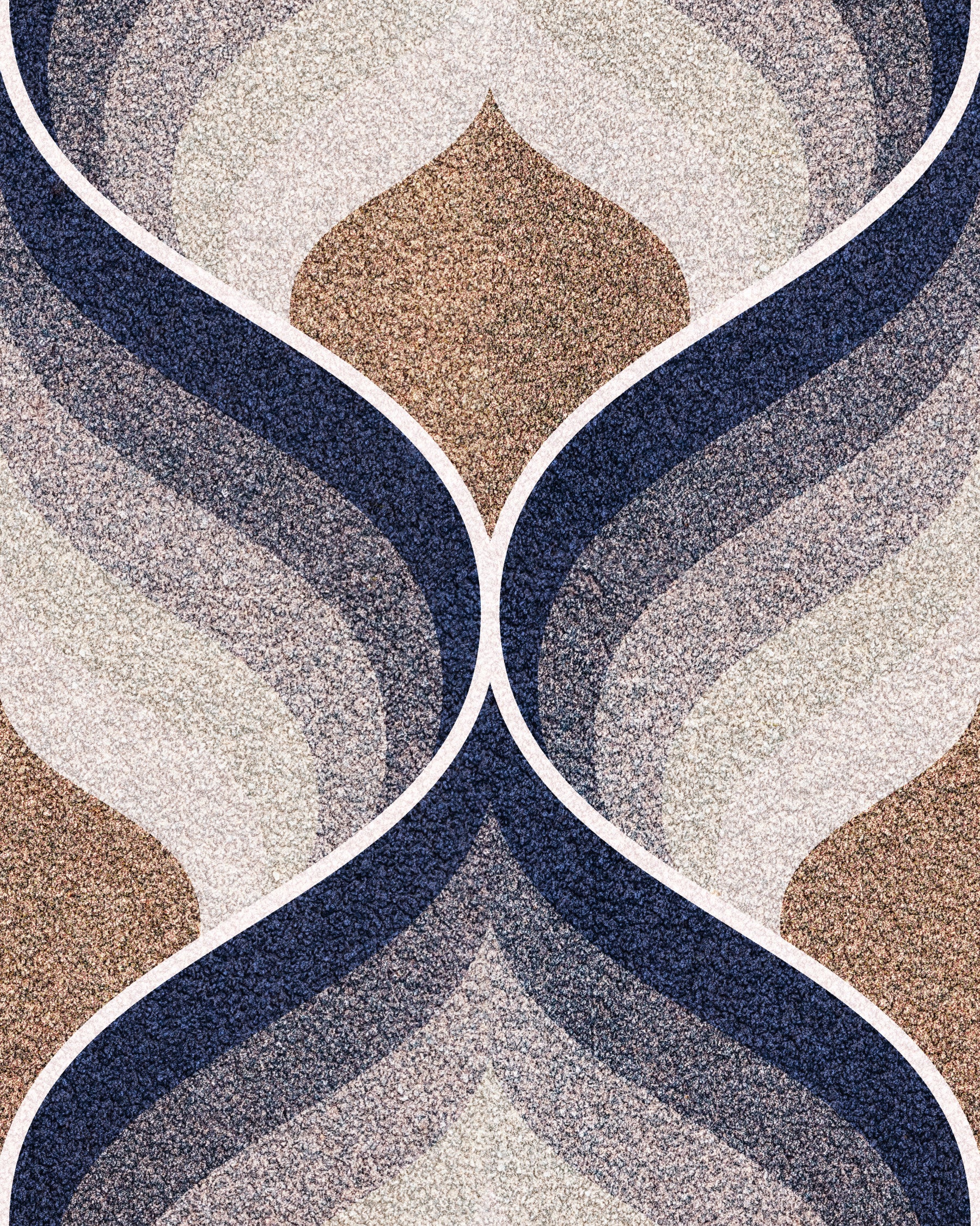 Discover a pattern of textured circles and curves echoing classic style. Its rich navy, tan, and soft beige colour palette brings warmth and intrigue. This symmetrical design has a calming impact. Transform your living room, bedroom, or study with this unique wallpaper for walls. The pattern enhances interiors with understated elegance and timeless charm.