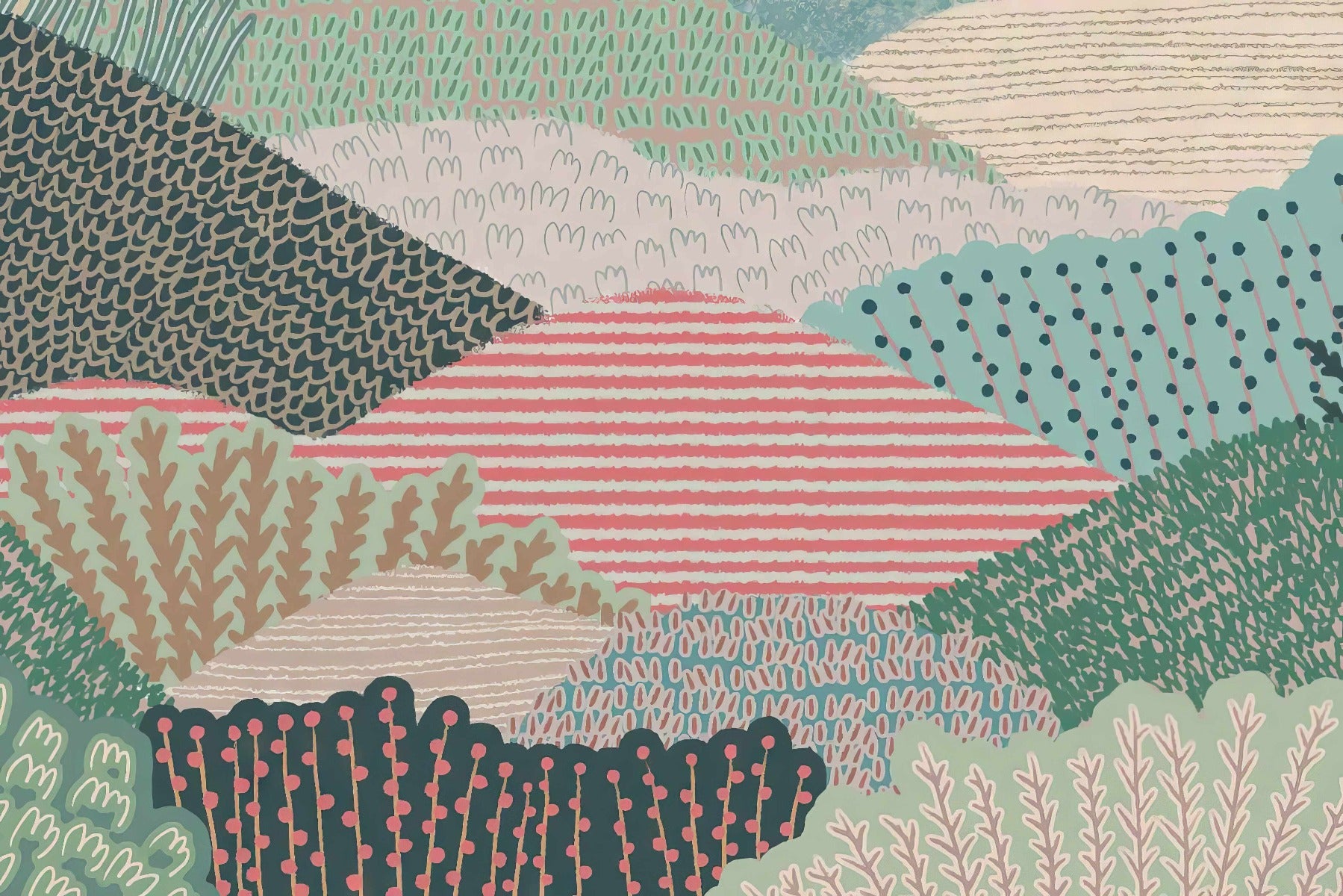 Wrap your walls in the textured landscape wallpaper mural, a captivating mosaic wallpaper that invites a symphony of patterned beauty into any room. Each section of this intricate tapestry of hues and textures weaves a story of outdoor serenity. Imagine the quiet rustle of leaves and the soft whispers of distant hills coming alive on your walls. This artistic portrayal is not just wallpaper; it's a conversation starter, a piece that celebrates nature's diverse brushstrokes. Perfect for the avid admirer of artful interiors, this mural becomes the focal point of your home, harmonizing with your unique style. Revel in the seamless fusion of color and shape that this textured landscape wallpaper mural presents, crafting a visual retreat brimming with creativity.