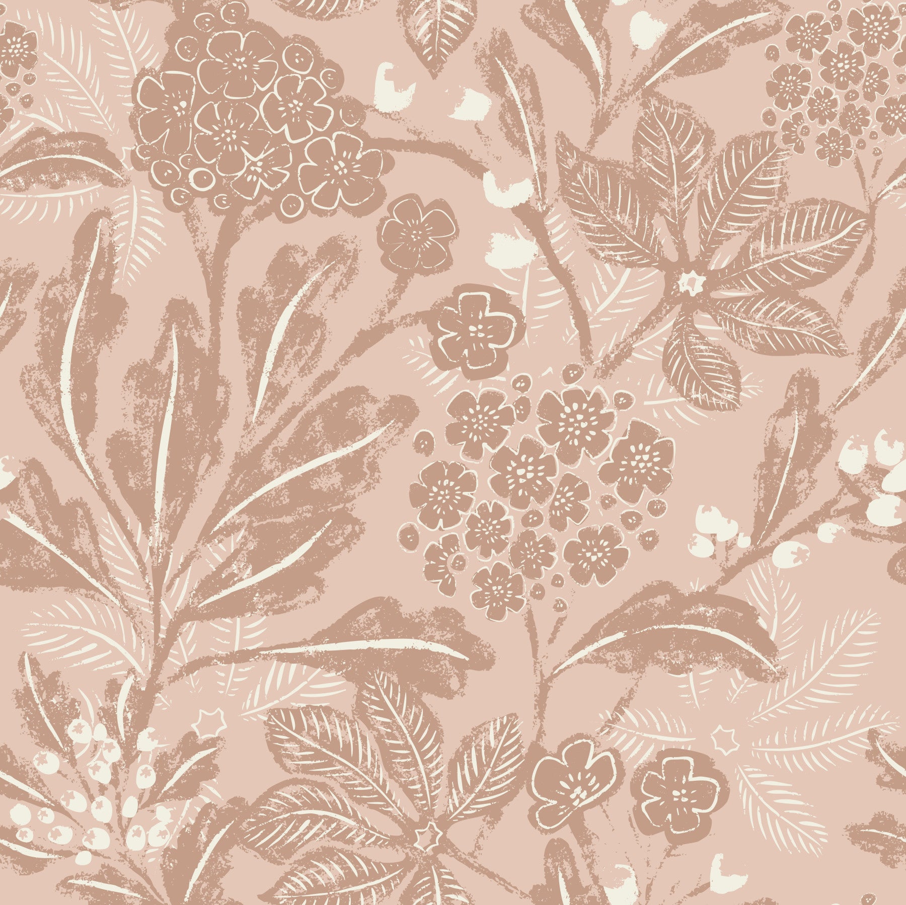 Close-up of textured terracotta blooms wallpaper pattern