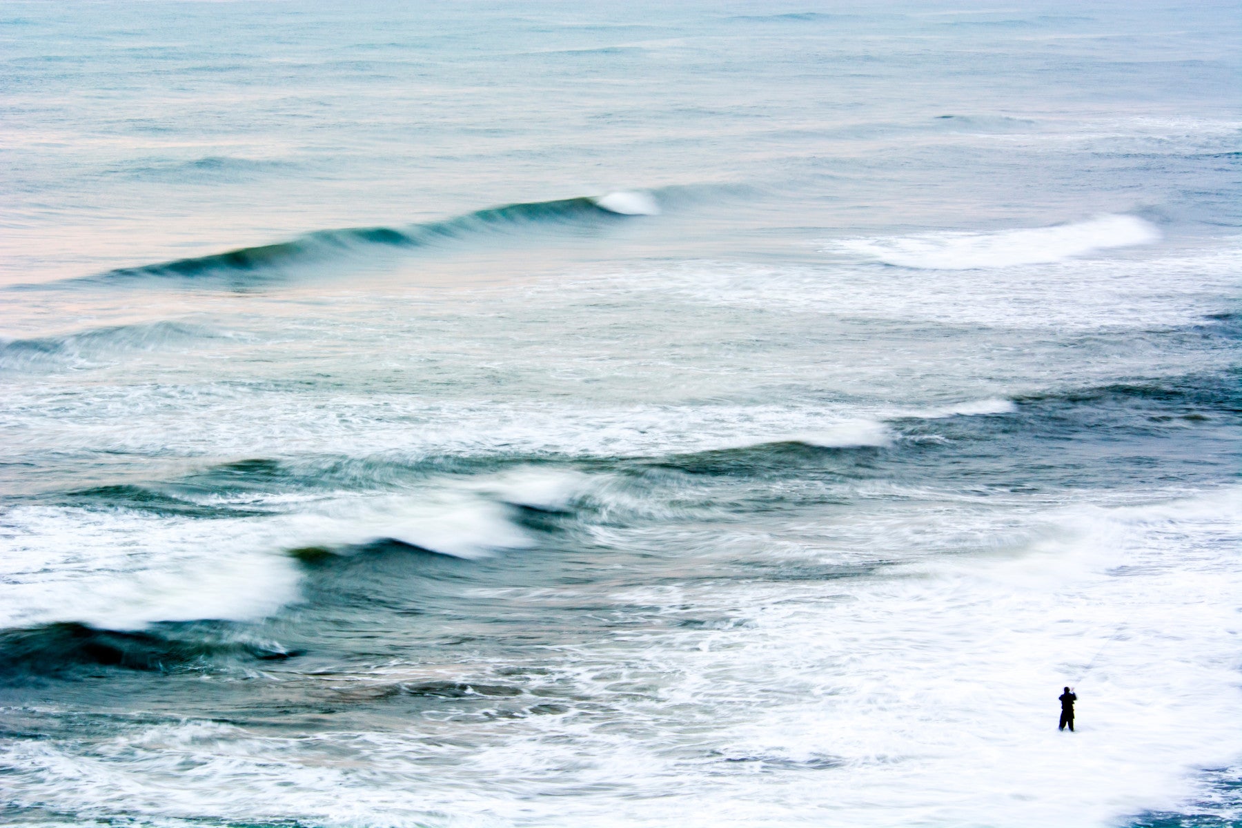 Immerse yourself in the serene yet powerful world of 'The Fisherman II,' a captivating wallpaper that echoes the timeless connection between man and the sea. Witness the relentless dance of ocean waves crashing against the shore, a spectacle of nature's raw beauty rendered in soft, muted tones. A solitary figure stands resilient amidst the turbulent waters, an embodiment of patience and unwavering determination. Is he a fisherman braving the elements, or a contemplative soul lost in the ocean's vastness? The blurred motion effect of the waves conveys a sense of dynamism and the passage of time, inviting viewers to pause and reflect. The contrast between the individual and the immensity of the ocean creates a powerful visual narrative, a reminder of our place in the grand scheme of nature. This wallpaper brings a touch of tranquil strength and thoughtful introspection to any digital space.