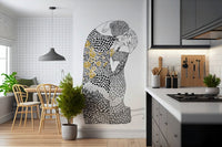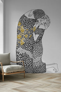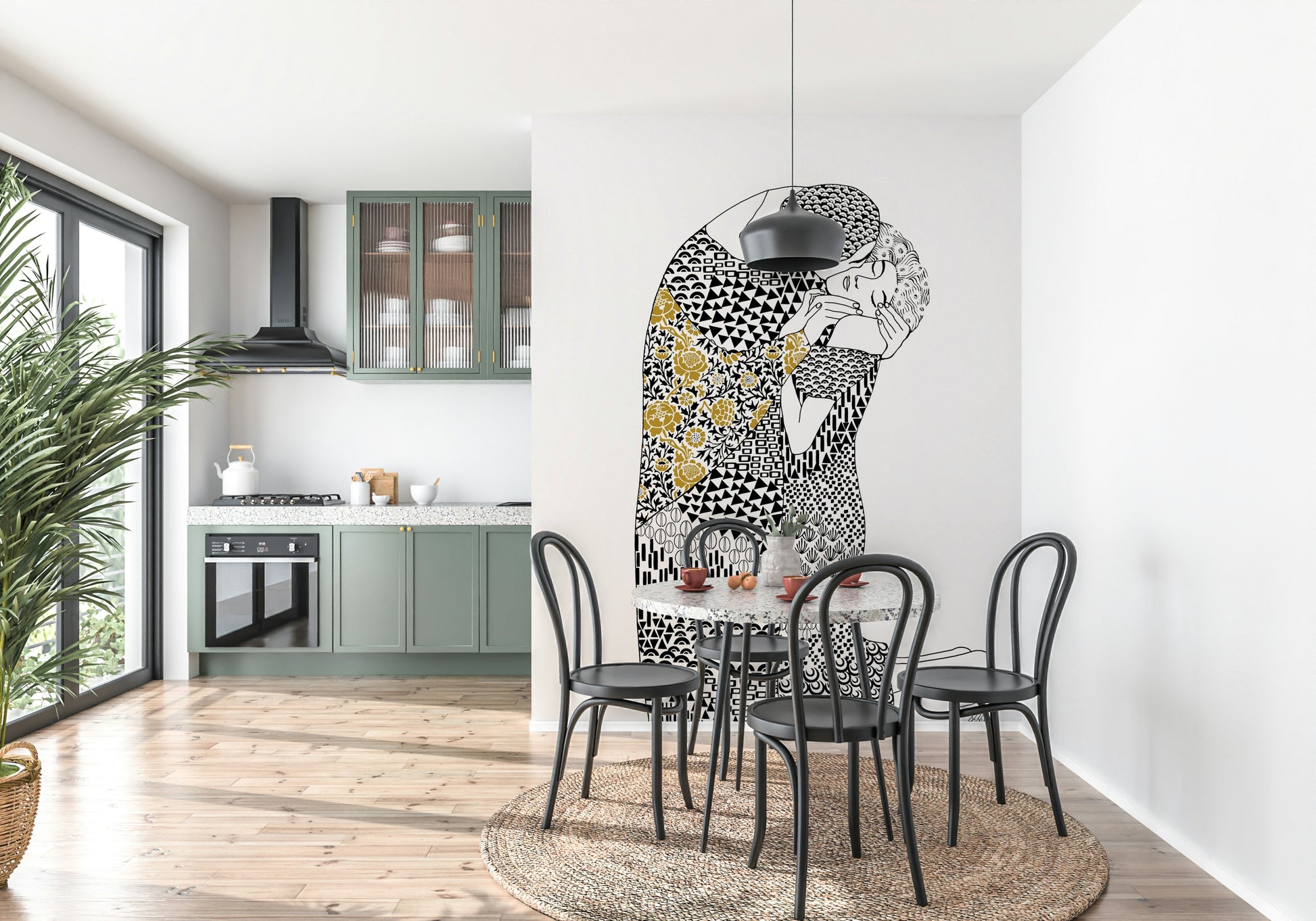 Immerse yourself in the tender embrace of "The Kiss," a captivating wall décor that echoes timeless romance. This artwork portrays a couple locked in an intimate moment, rendered in striking graphic patterns with a touch of golden floral elegance. The intricate details invite you to explore the depth of connection. Feel the intensity and passion with every glance. The intertwining figures are enveloped in geometric designs, while the flowing floral accent adds an organic counterpoint, symbolising the bloom of love. "The Kiss" is more than just an image; it's an emotional narrative for any living space. Let it be a visual declaration of affection, breathing life and warmth into your home.