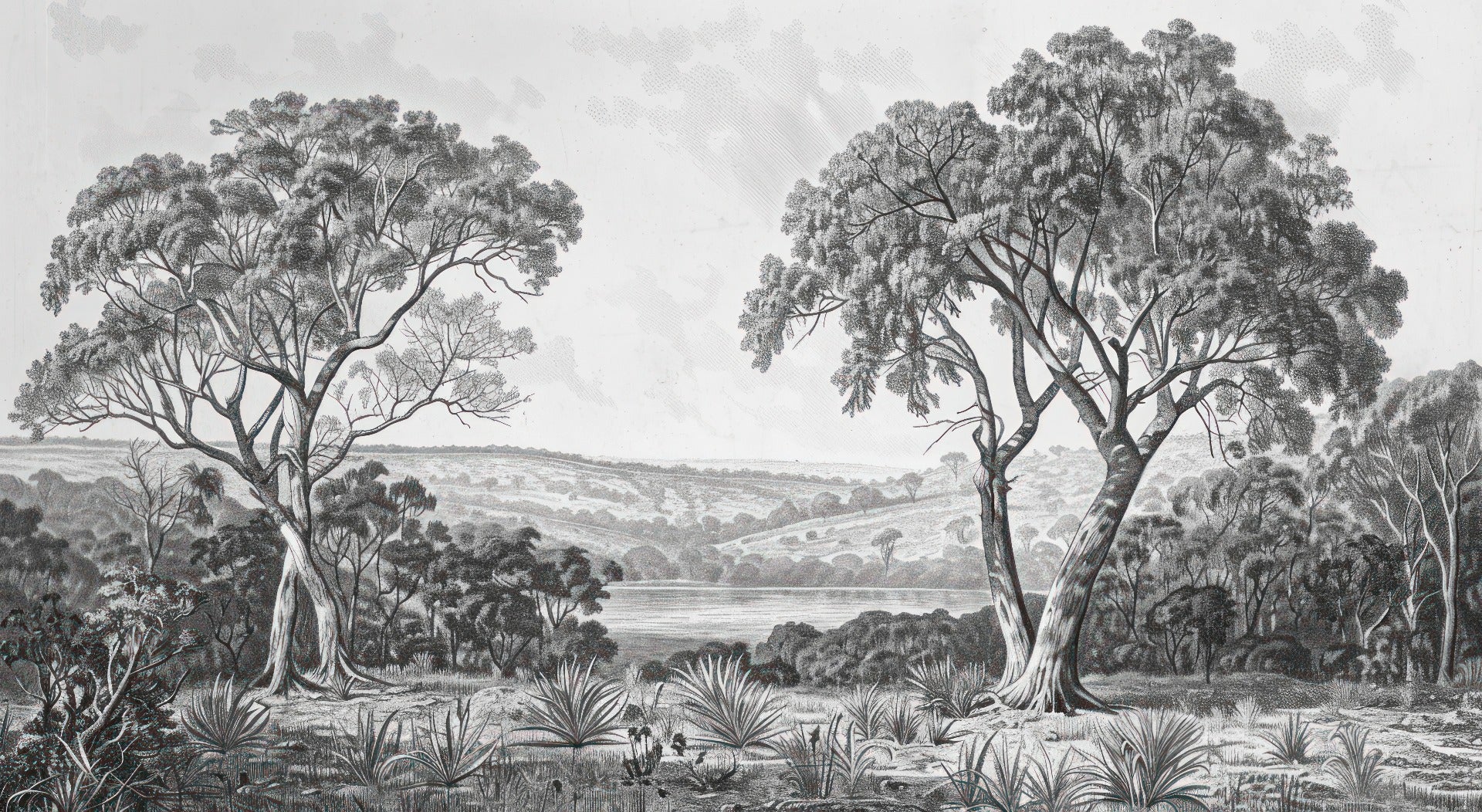 Artistic black & white forest wall mural