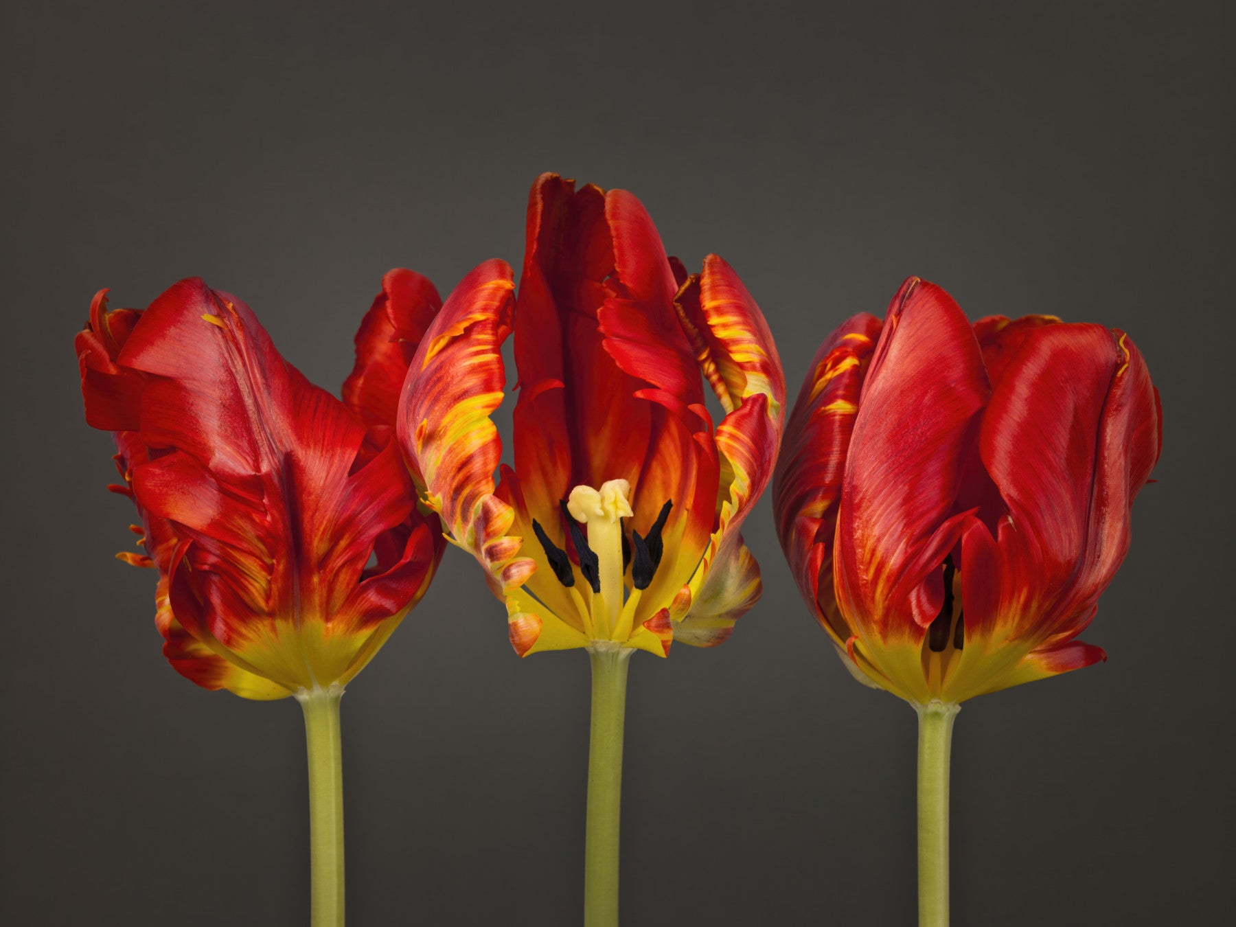 Three Rococo Tulips Wall Mural showcasing vibrant colors.