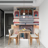 Elevate your interior design with this timeless facade wallpaper for walls. Showcasing meticulously detailed arches, ornate patterns, and a muted colour palette, this design merges regal charm with calming aesthetics. A harmonious blend of beige, teal, and coral shades complements any decor style, making it a versatile choice for living rooms, hallways, or offices. This wallpaper creates an inviting atmosphere, enriching your space with a sense of sophistication. Experience the transformative power of this historical design, bringing refined elegance and cultural artistry to your interiors.