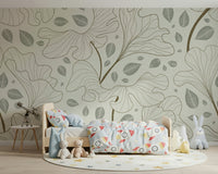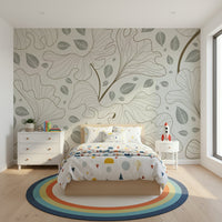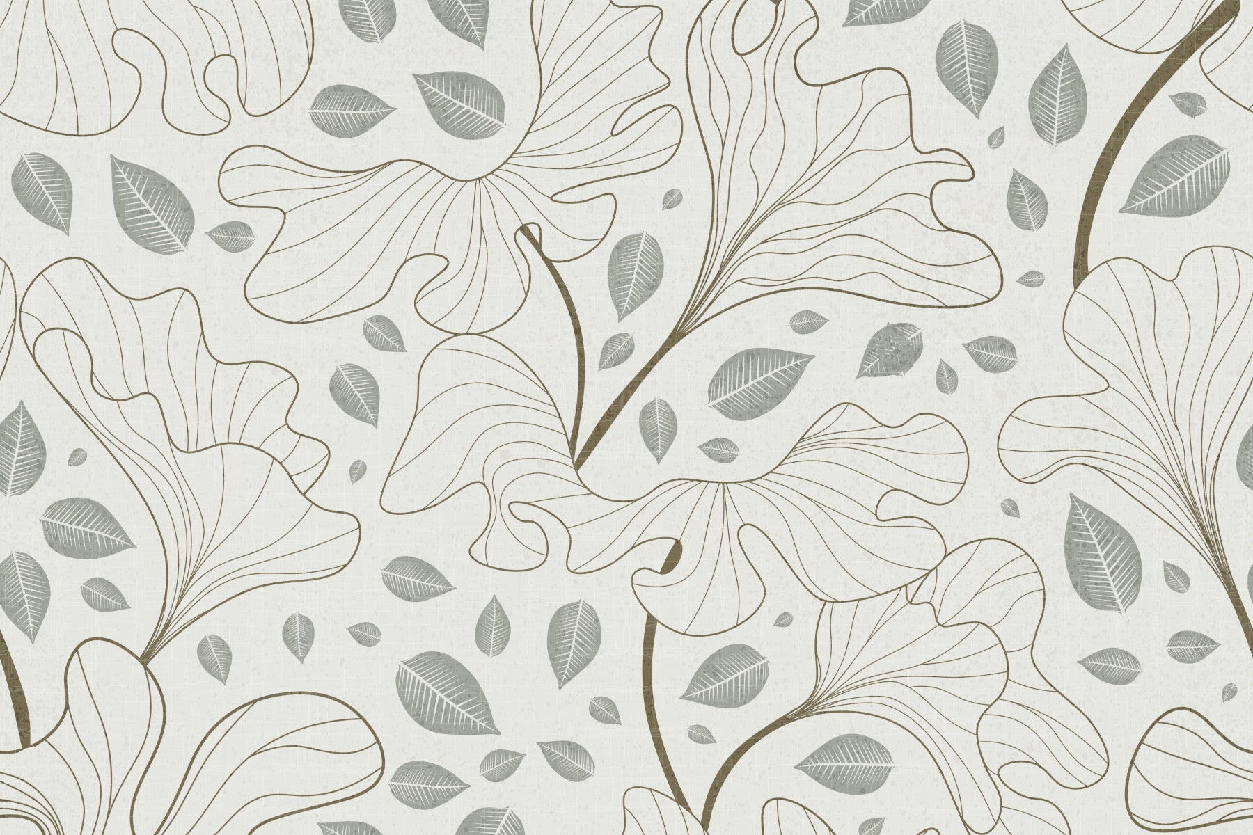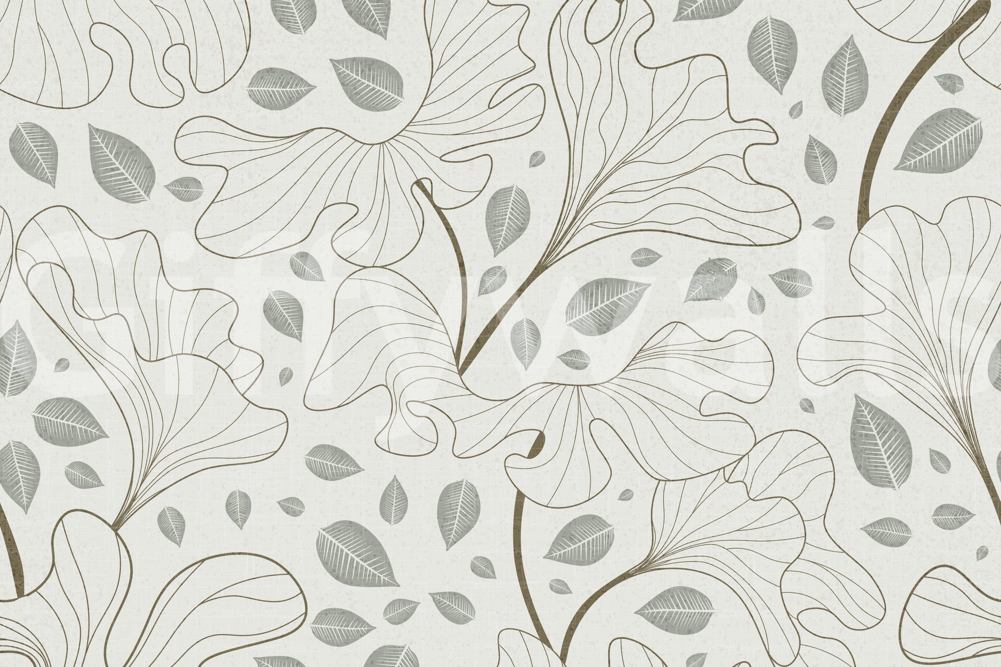 This stylish wallpaper features a seamless pattern of lined botanical shapes and scattered leaves. The muted colours, a blend of soft beige and gentle grey, lend a calm, sophisticated mood to your space. The repeating design creates an open and airy feel, suitable for any room. Use this wallpaper for walls to create a feature wall in a living room, bedroom, or hallway. It offers a modern, elegant look that enhances your interiors.