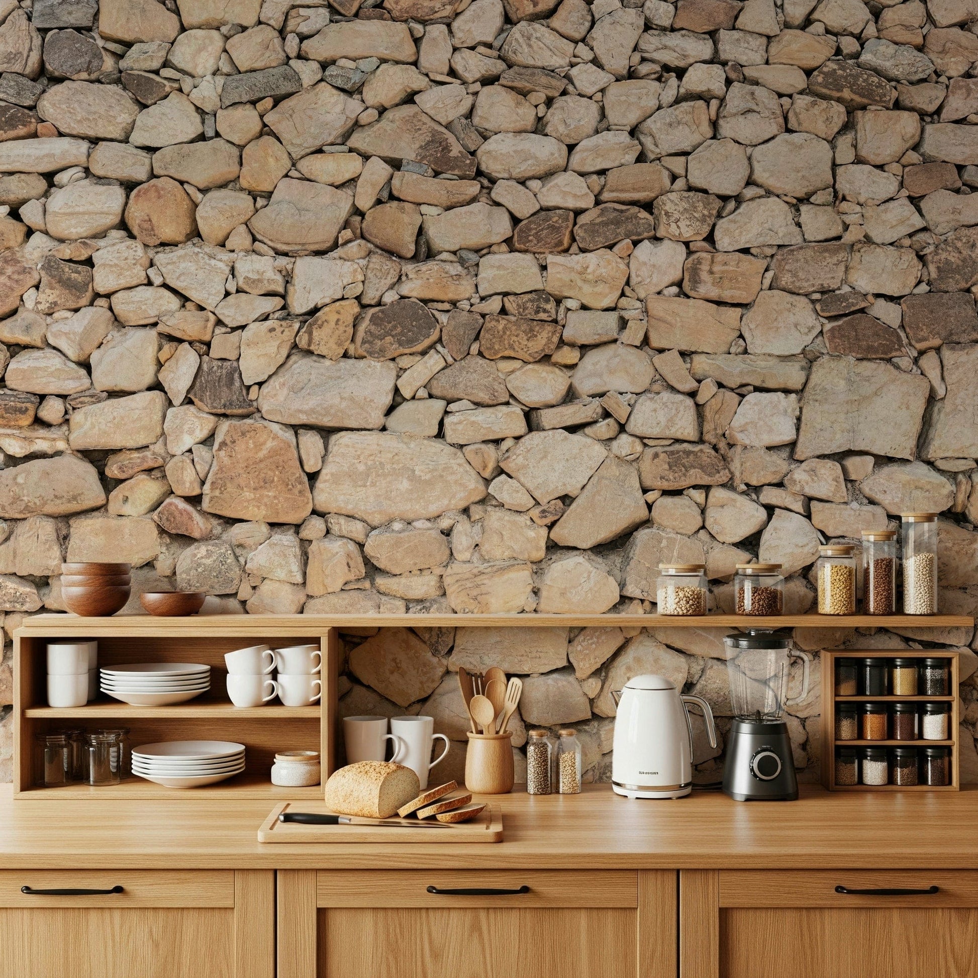 Embrace the enduring strength and beauty of "Timeless Stonework", a wallpaper that captures the rugged elegance of natural stone. This design features a meticulously arranged pattern of irregular stones, each with its own unique texture and warm, earthy tones. The subtle variations in colour and shape create a visually rich surface, evoking a sense of history and permanence. Perfect for adding depth and character to any space, "Timeless Stonework" provides a grounded, organic feel that complements both modern and traditional interiors. Imagine the solidity of ancient walls, the quiet resilience of mountains – bring that timeless appeal into your home with this captivating wallpaper. Let the unyielding charm of stone transform your walls into a statement of enduring style.
