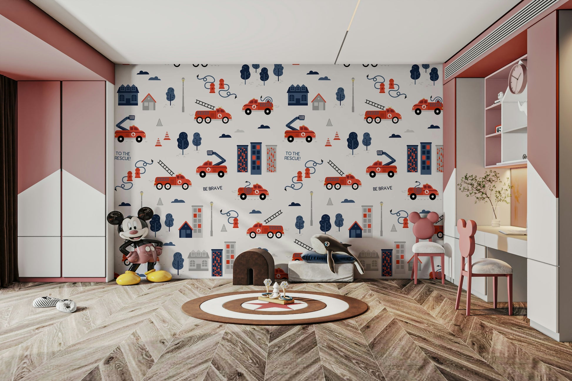 Add a spark of adventure to your child’s room with the To The Rescue Grey wallpaper. This playful design features bright red fire trucks, fire hydrants, ladders, and urban buildings against a soft grey backdrop perfect for inspiring little heroes. Ideal for nurseries, playrooms, or themed bedrooms, it brings energy and imagination to any space. The charming details and bold colors make it a fun yet stylish choice for kids who dream of being firefighters. Easy to apply and remove, this wallpaper is a great way to refresh a room with personality and purpose. Let the rescue missions begin!