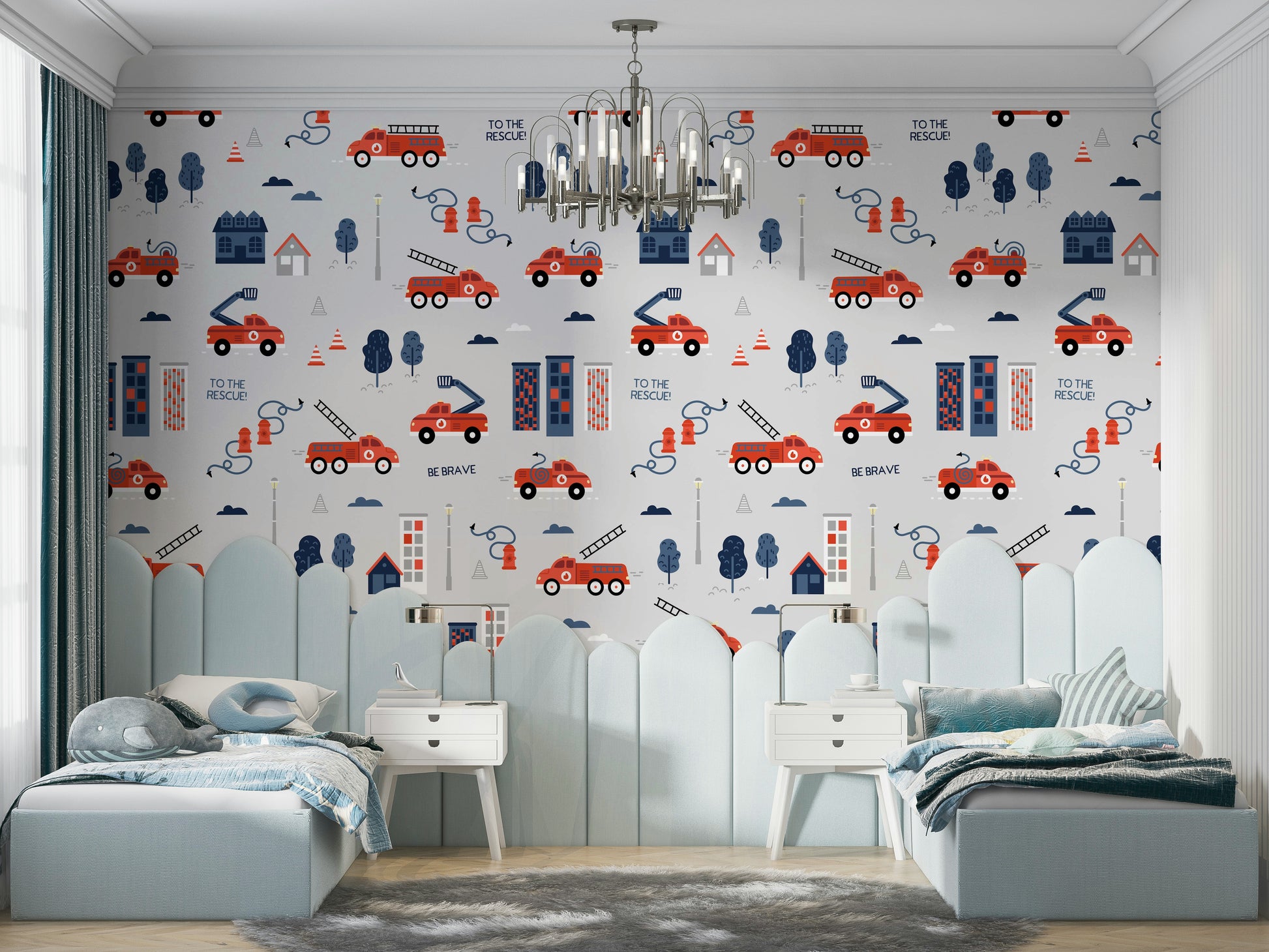 Transform your child’s room into an adventurous landscape with our To the Rescue – grey wallpaper. This playful, rescue-themed wallpaper features lively fire trucks, emergency vehicles, and bustling cityscapes, sparking imagination and excitement. Perfect as a boys room wallpaper or for a fun nursery wallpaper update, it encourages dreams of heroism and bravery. In soothing shades of grey and red, this grey kids wallpaper adds a vibrant touch to play areas or bedrooms while staying neutral enough for a modern look. Whether you're decorating a toddler’s space or looking for peel and stick grey wallpaper that’s easy to apply and remove, this transportation-themed wallpaper brings charm and adventure to any wall. Discover the perfect backdrop for creative play and heroic tales today.