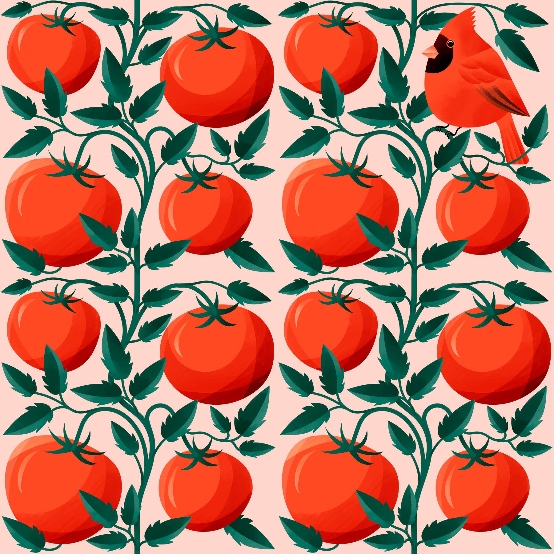 Tomatoes and a Cardinal Bird Wallpaper⁠