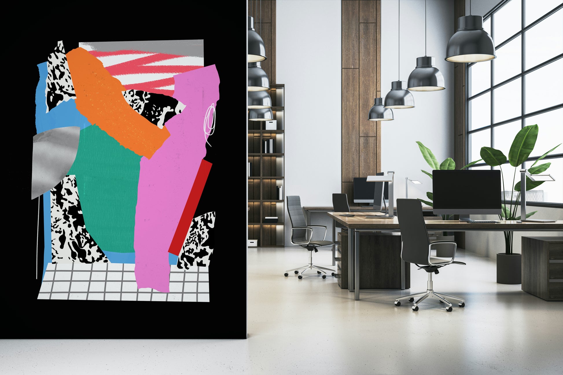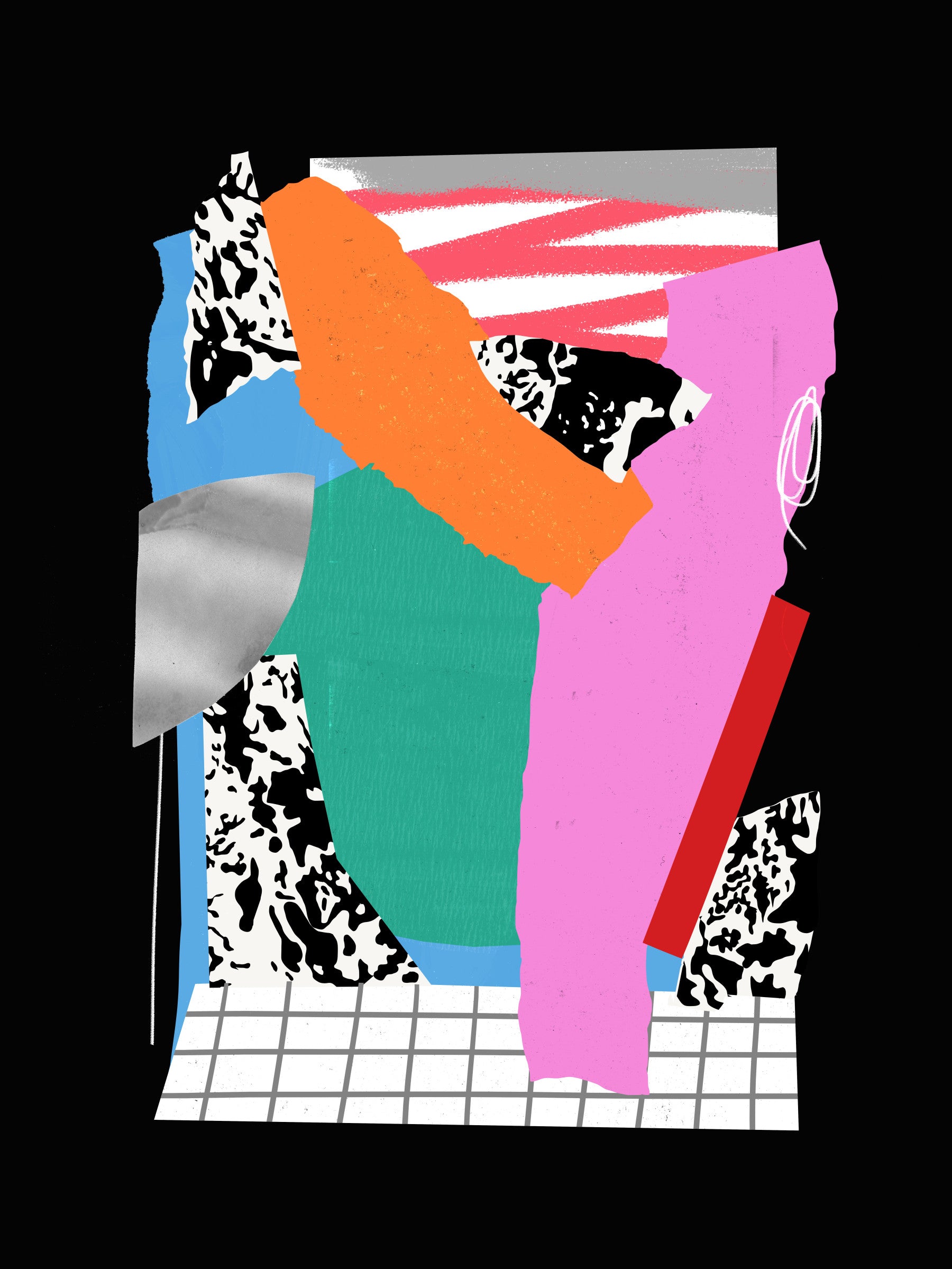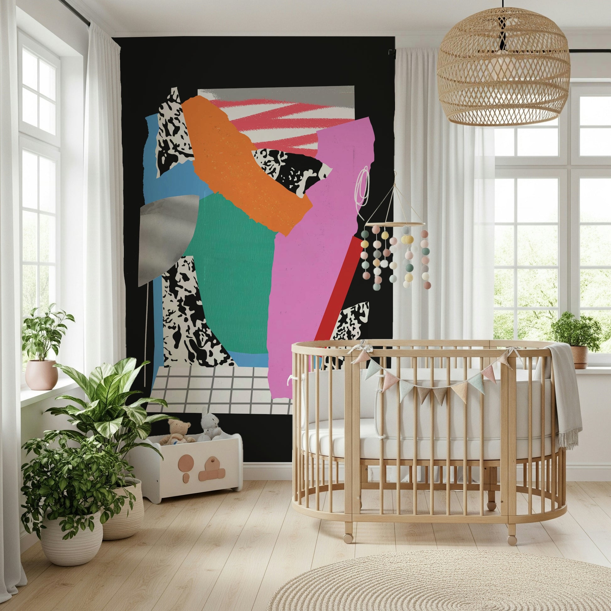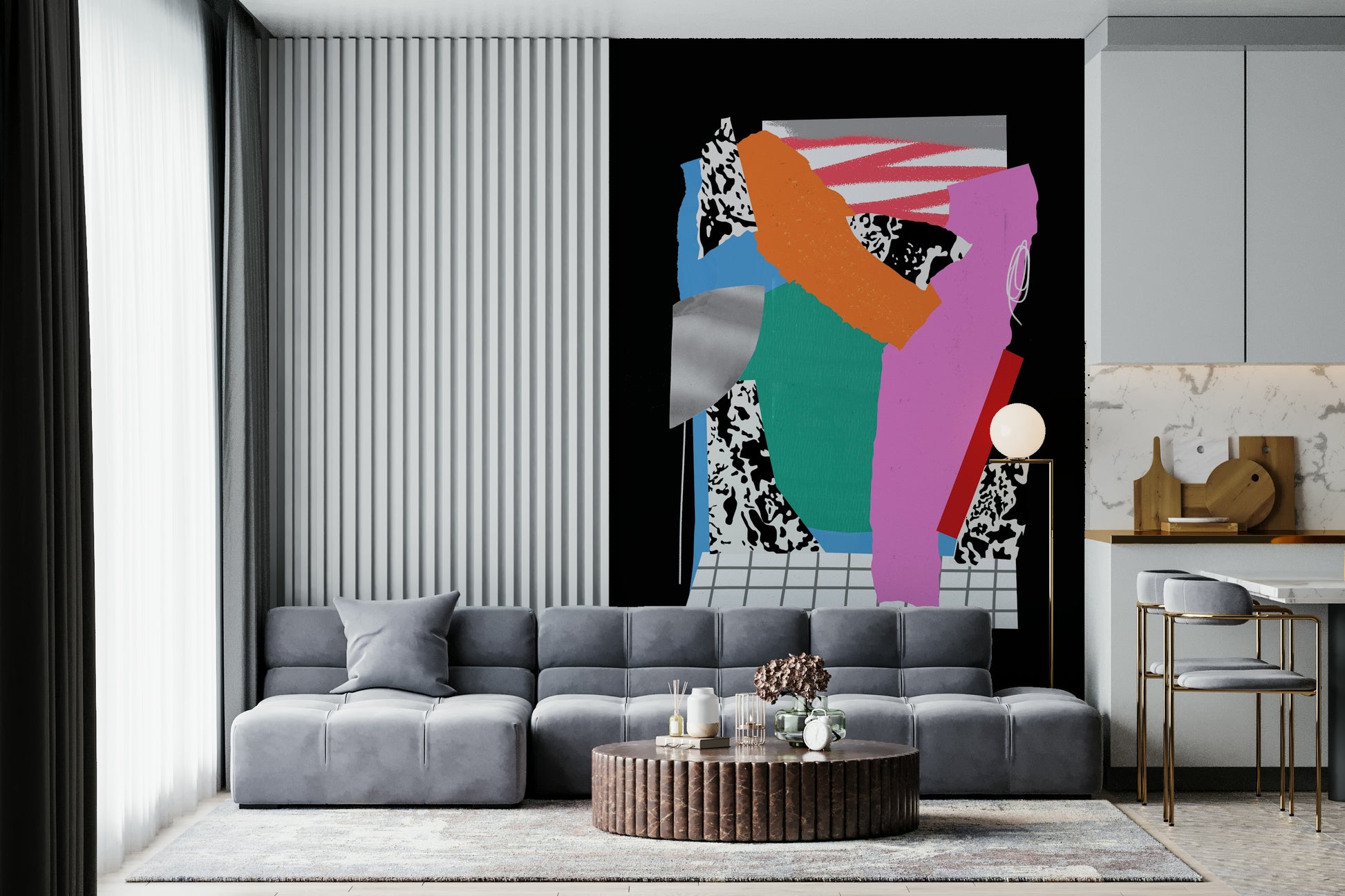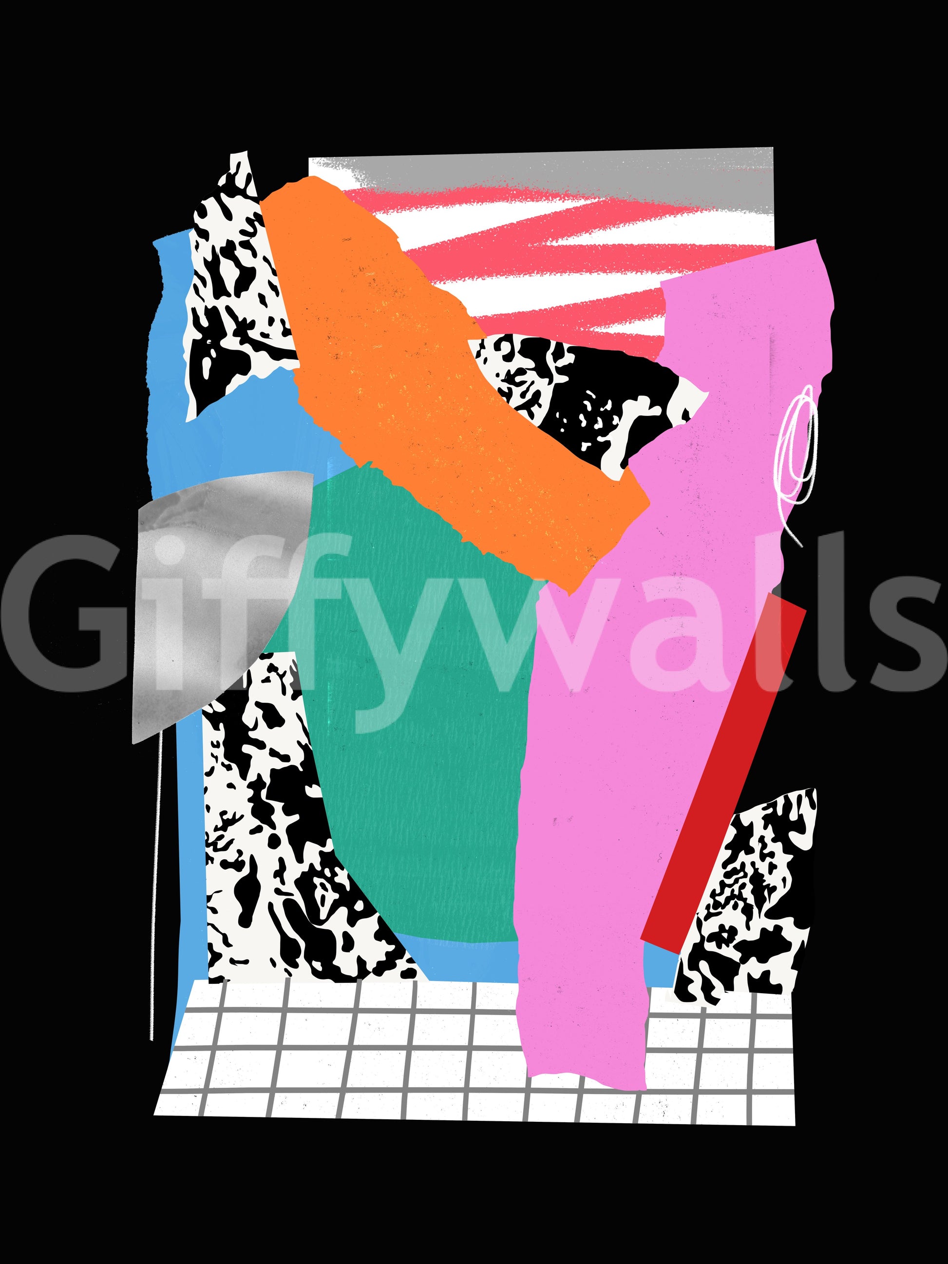 Witness the vibrant echoes of a forgotten future with "Tomorrow's Dust". This abstract wallpaper is a bold composition of fragmented memories, rendered in a striking collage style. Jagged shapes in hues of pink, orange, turquoise, and blue clash and converge against a stark black backdrop, hinting at remnants of a once-bright world. The presence of a grayscale texture block and a grid pattern invokes a sense of decaying structures, a faded architecture that time has left behind. The raw, painterly textures and contrasting patterns create a captivating visual tension, inviting reflection on the ephemeral nature of progress and the enduring allure of what remains when everything fades. Embrace the intriguing mystery of "Tomorrow's Dust" and let it spark contemplation on the cycle of creation and decay.