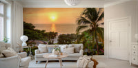 Transform your room into a tropical haven with this breathtaking wallpaper. It showcases a stunning sunset scene with palm trees silhouetted against a vibrant sky. The design exudes tranquillity and warmth. This wallpaper for walls is especially good for living spaces and bedrooms. The rich colours and serene atmosphere will help to create a relaxing and inviting interior. Transport yourself to a peaceful island with this captivating view.