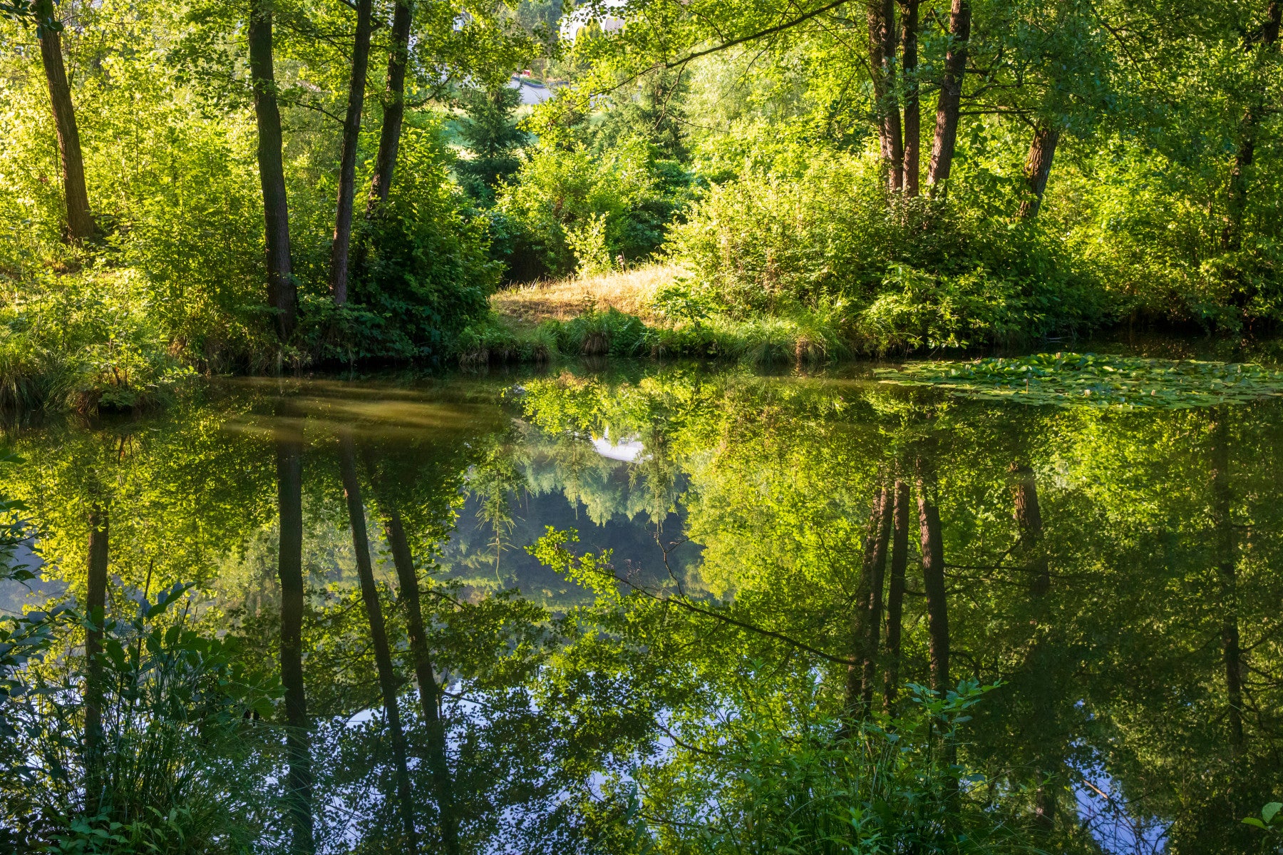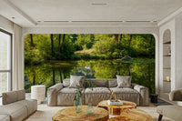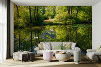Tranquil Nature Reflection Art Print - Serene Water and Greenery Scene Wall Mural