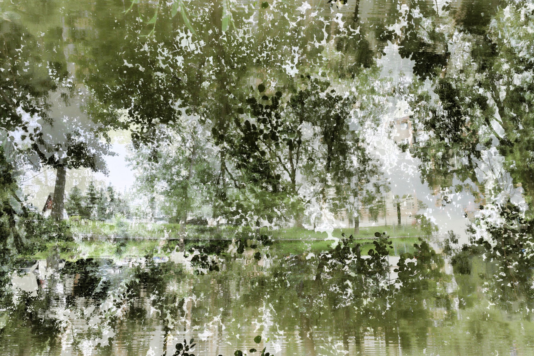 Tranquil Reflection of Nature - Abstract Greenery Art Print Wall Mural
