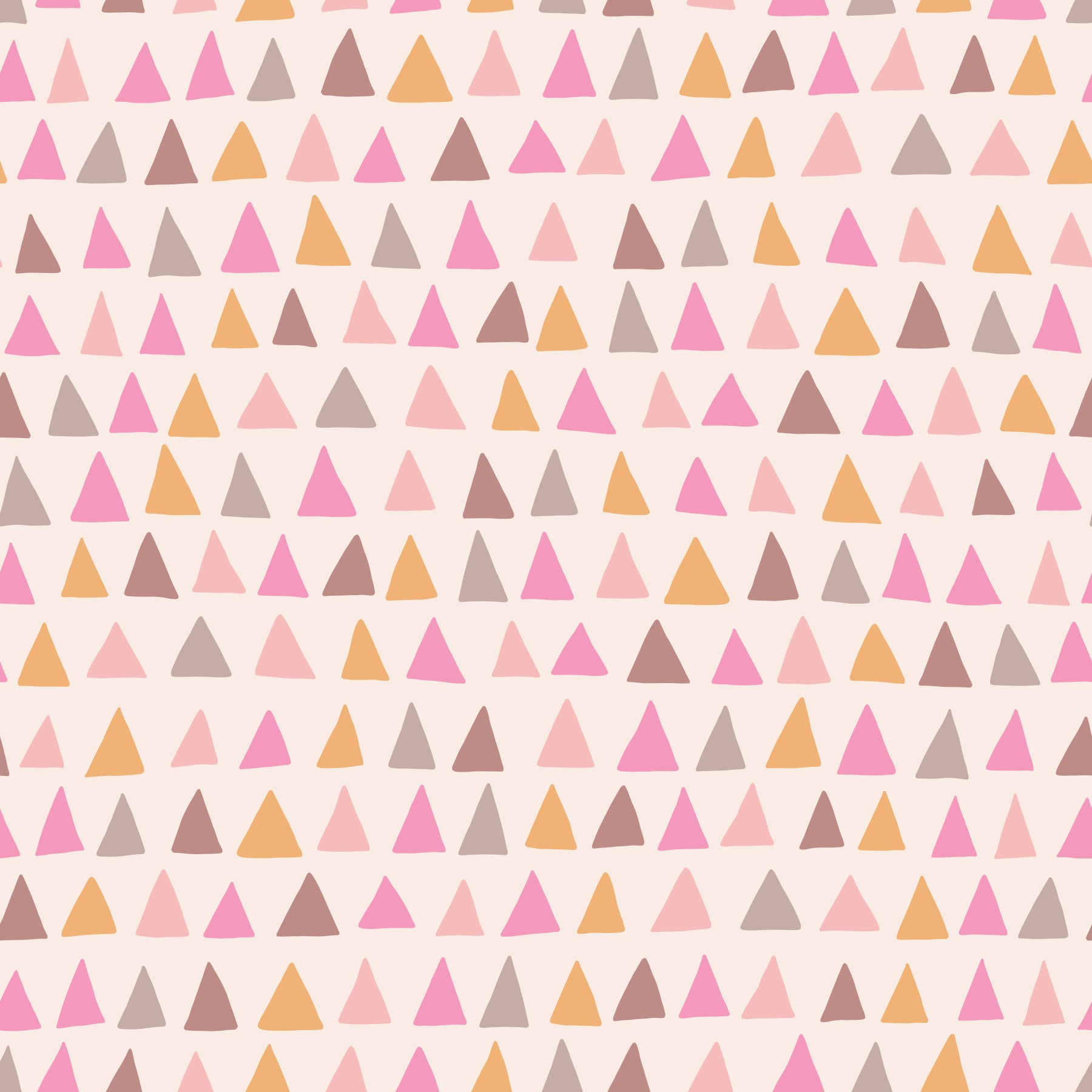 Immerse yourself in a delightful world of pastel hues with this "Triangle Multicolor Pink Vibes" wallpaper. A gentle, off-white background is playfully punctuated by a repeating pattern of hand-drawn triangles in soft pinks, oranges, and muted browns. The slightly imperfect, organic shapes create a charming, handcrafted aesthetic. This design evokes feelings of warmth, calmness, and subtle sophistication, making it perfect for adding a touch of understated elegance to your space. The harmonious color palette and simple yet stylish pattern ensures this wallpaper remains visually pleasing and unobtrusive, creating a serene backdrop for your home interior.