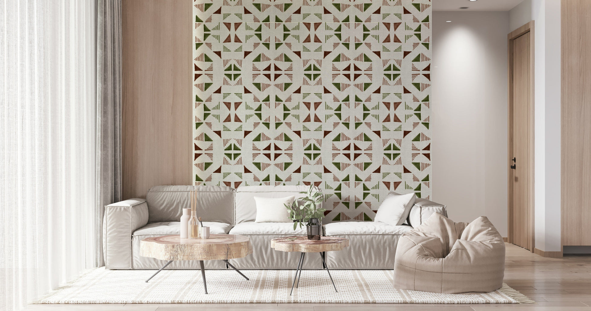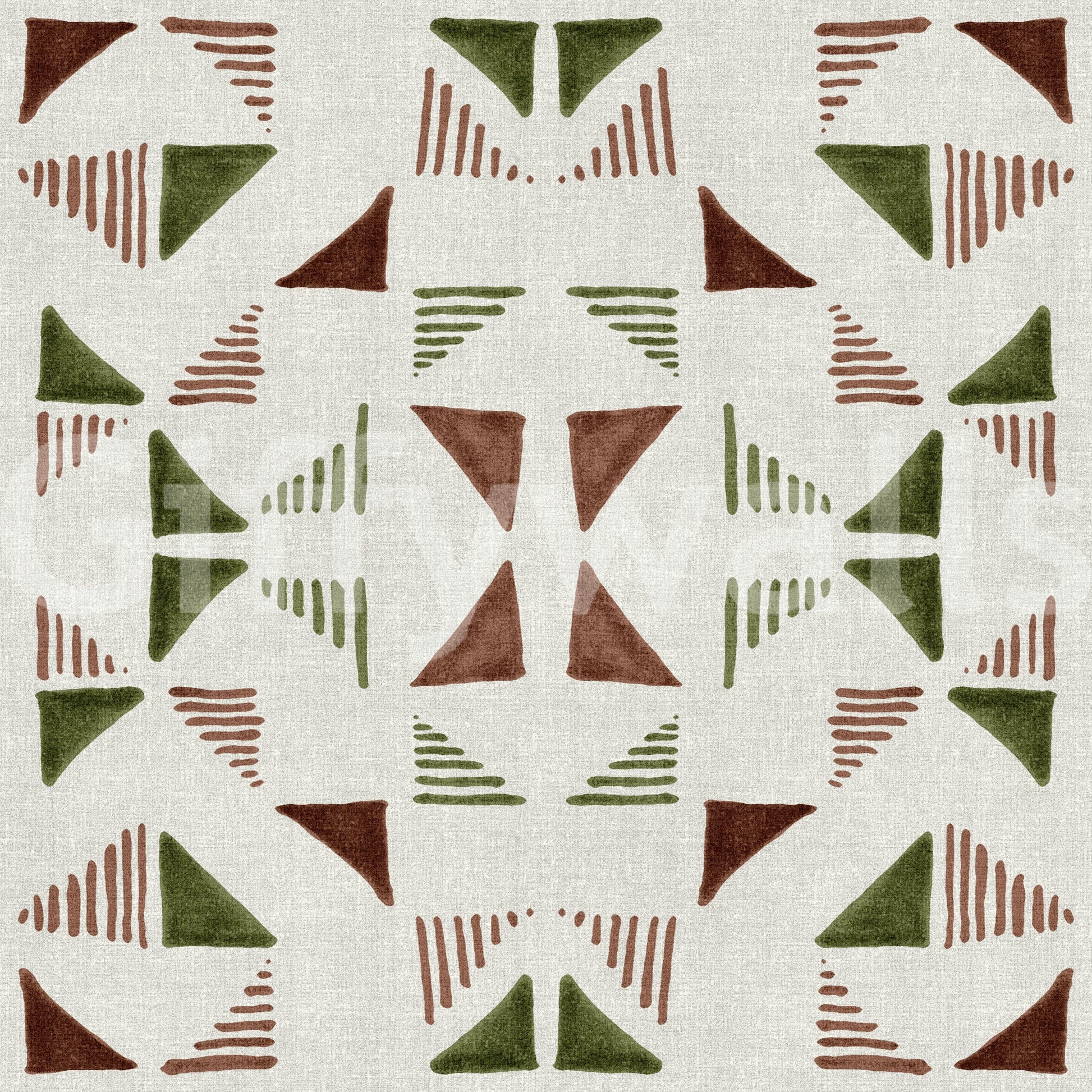 Immerse yourself in the subtle yet captivating world of 'Triangles Composition Forest'. This wallpaper presents a stylised abstraction of nature, employing a mesmerising geometric arrangement of triangles in earthy tones of brown and olive green. The composition evokes a sense of dense foliage and the play of light and shadow within a forest, rendered with a modern, minimalist twist. Subtle linear details accompany the triangles, enhancing the depth and visual interest of the design, mimicking patterns within nature. The textural background adds a tangible, organic feel, making it feel as though the design is pressed upon canvas. This wallpaper offers a sophisticated and calming aesthetic, ideal for creating a tranquil and stylish atmosphere in any space. Bring the serenity of the forest indoors with this unique geometric design.