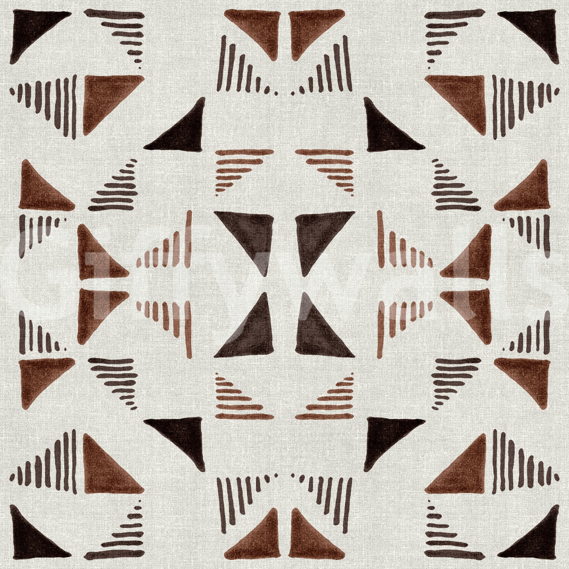 Embrace the rustic charm of 'Triangles Composition Wood,' a wallpaper that brings a touch of organic sophistication to your digital space. This captivating design features a meticulously arranged composition of triangles in varying shades of brown, reminiscent of aged wood textures and earthy tones. The geometric shapes, interspersed with linear patterns, create a balanced and visually intriguing motif.