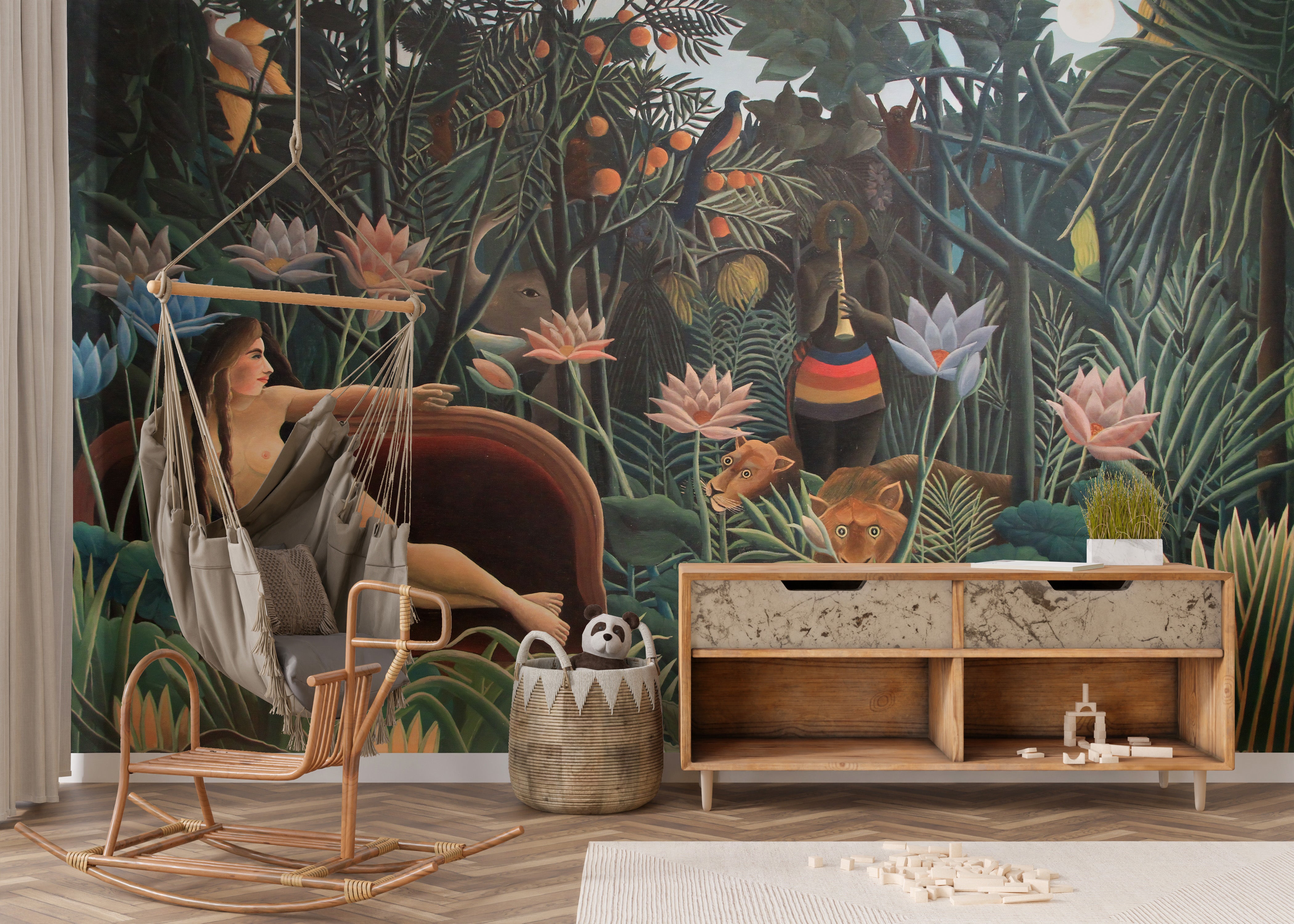 The tribal rhythms tribal forest mural wallpaper brings the enchanting beauty of nature into the comfort of your home. The intricately detailed design captures the essence of tribal art, blending it seamlessly with the wondrous features of the forest. The peel and stick wallpaper effortlessly creates a serene atmosphere that is both calming and stimulating. The intricacy of the design is sure to delight the eyes and awe all who lay eyes on it. It is perfect for anyone who wants to add a touch of nature to their living space while still incorporating a tribal vibe.