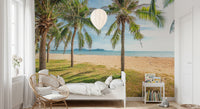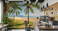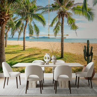 Transform your living space into a serene coastal getaway with this captivating wallpaper for walls. It features lush palm trees, a sandy beach, and tranquil ocean views. The wallpaper brings a slice of paradise directly into your home. Its warm, inviting colour palette of sandy beige, turquoise water, and lush green foliage create a calming atmosphere. This design works beautifully in living rooms, bedrooms, or sunrooms. The vibrant tropical theme complements a coastal or bohemian style, enhancing any interior with a fresh, vacation-like feel.