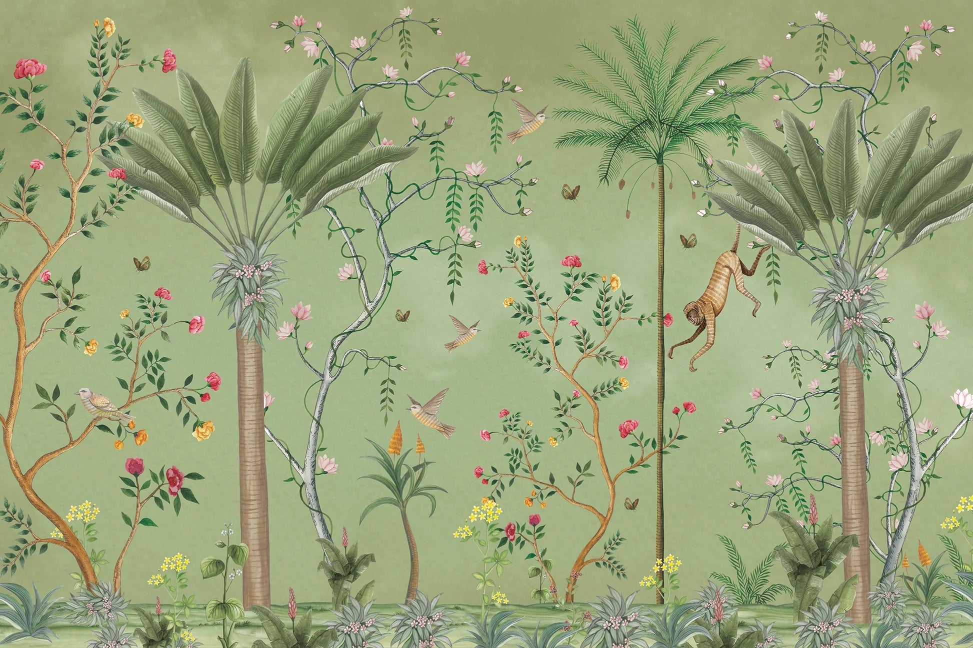 This tropical chinoiserie wallpaper mural offers a captivating design inspired by lush, green landscapes. Featuring exotic plants, vibrant flowers, and delicate birds, this green wallpaper adds a lively touch to any room. Perfect for living rooms, bedrooms, or dining areas, it creates an inviting and fresh atmosphere. The intricate details and vibrant colors make it a standout choice for those looking to bring a piece of nature indoors. The mural's high-quality material ensures durability and long-lasting beauty. Order your Tropical Chinoiserie Green Wallpaper Mural today and enjoy a unique and refreshing change to your home decor.