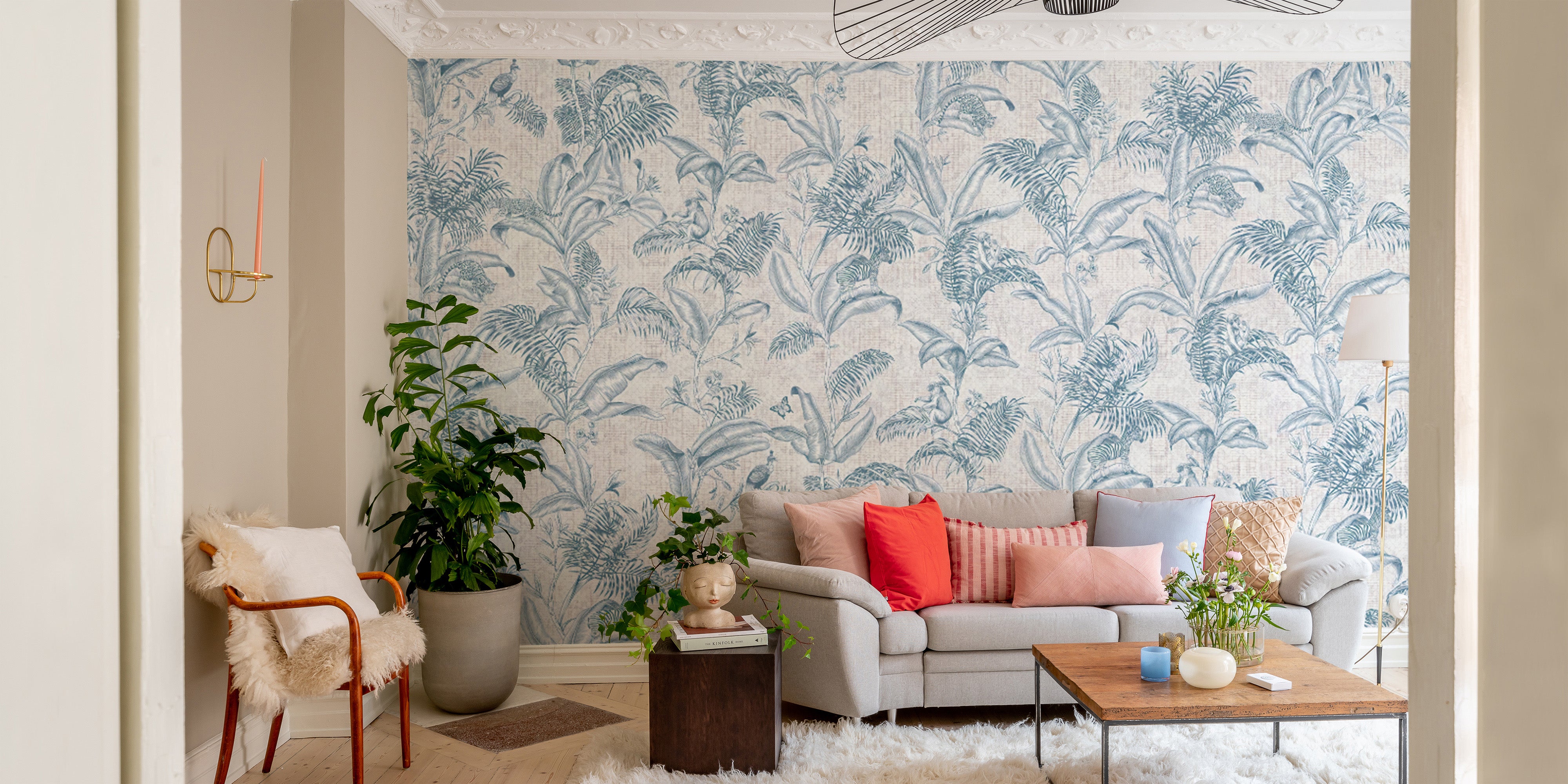 Darwin-inspired tropical wallpaper for a unique wall makeover.