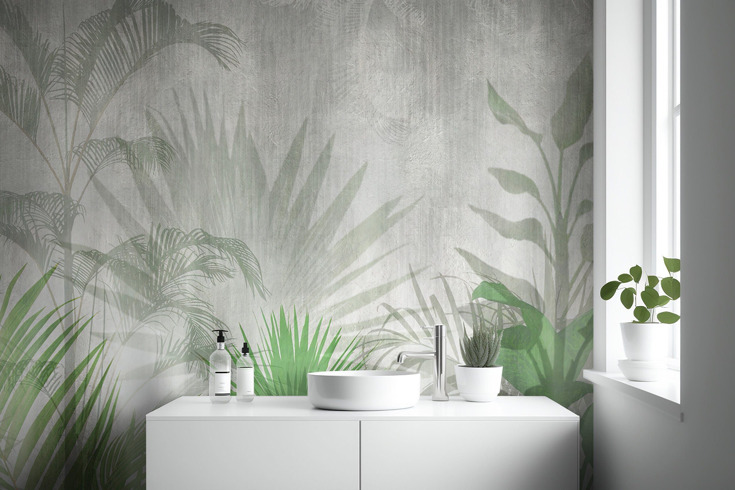 Elevate the ambience of your dining area with our tropical green leaf mural wallpaper. This exquisite design, infused with the beauty of nature, showcases delicate shadow leaf patterns that dance across the mural, bringing the outdoors into your dining space. It's not just a wallpaper but a conversation starter, effortlessly blending elegance with the refreshing aura of a tropical paradise. Whether you're hosting a dinner party or enjoying a quiet meal, this dining room wallpaper ensures your space feels serene and inviting. Dive into nature's embrace and redefine your interiors with our shadow leaf wallpaper design. Perfect for those looking to add a touch of tropical sophistication to their home decor.