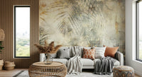 Transform your living space with this unique wallpaper for walls! The design features palm leaves over a textured, grunge-style background, blending tropical charm with urban edge. Earthy tones of beige, brown, and grey create a sophisticated yet relaxed ambiance. Ideal for living rooms, bedrooms, or hallways, this wallpaper adds depth and character. Its versatile style complements modern, industrial, and even bohemian interiors.