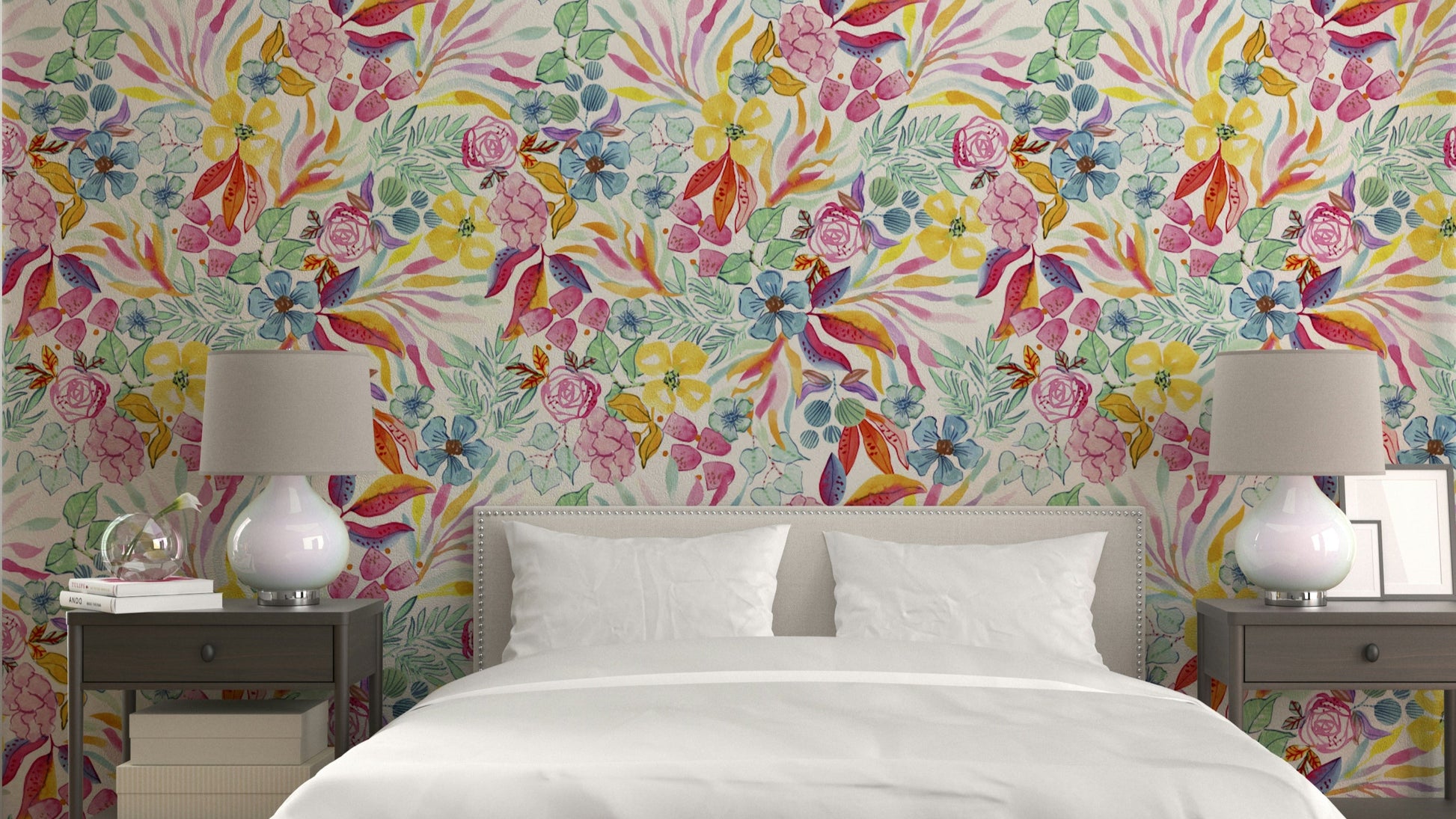 Vibrant tropical wallpaper featuring watercolor design