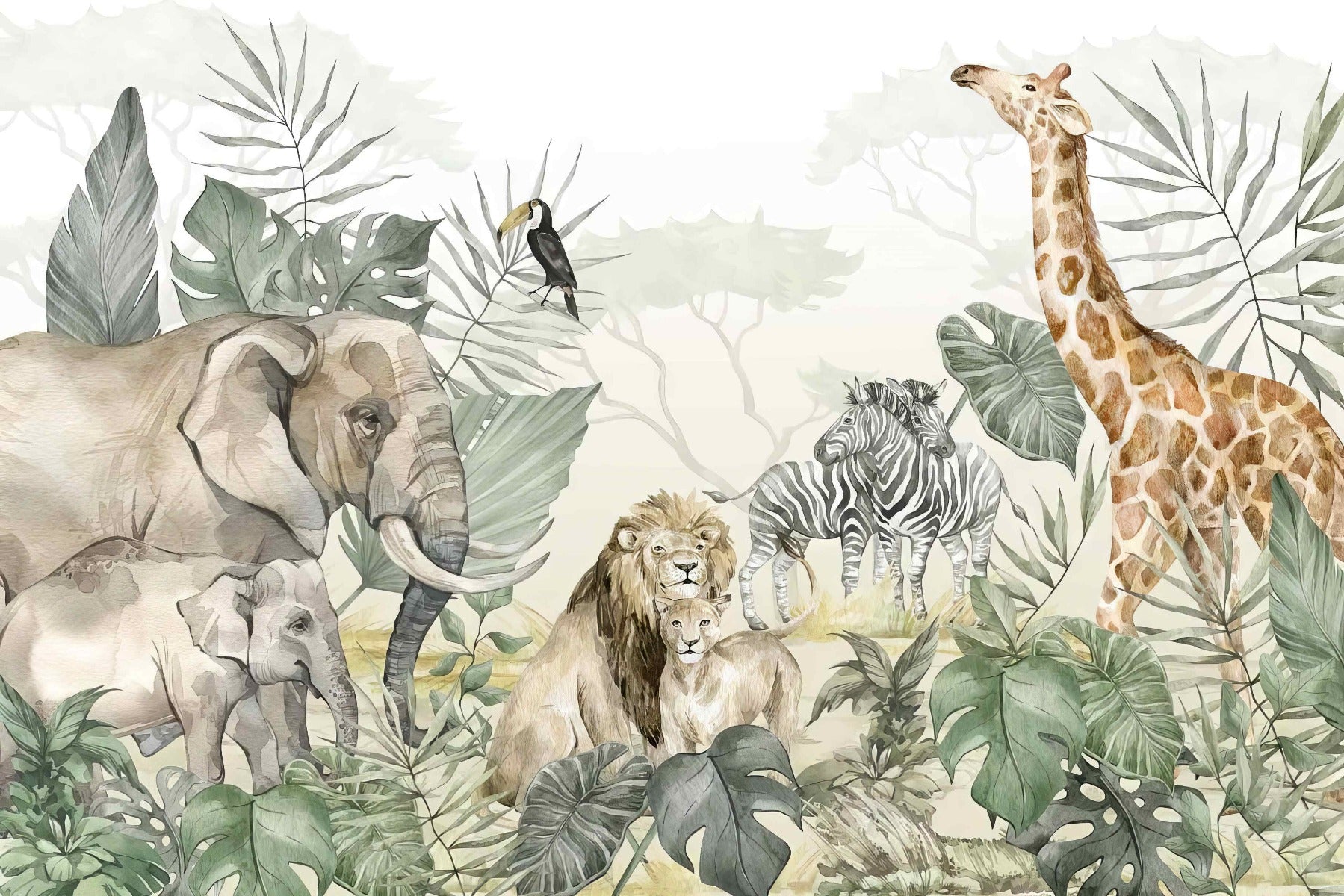 Make your home a tropical oasis with exotic animals and lush rainforest. This Tropical Wildlife Wall Mural is Jungle inspired and creates a sanctuary inside your space. It is fresh and lively with peaceful animals cuddling and showing love for each other. Such incredible designs are perfect for every space, adding a visual retreat with nature’s allure. The vibrant texture fits every space and evokes perfection with rich elegance. The elements fit perfectly for creative accents, unleashing soft wilderness at every corner and edge of the interior. Such Tropical wallpaper makes the room inviting and injects offbeat elegance at every corner.