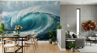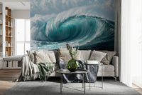 Infuse your interior spaces with the energy of the ocean using this immersive wallpaper for walls. This design features a colossal wave, displaying a spectrum of blues, with the turquoise depths forming its heart. White foam cascades down its face, highlighting raw oceanic power. Perfect for living rooms, bedrooms, or hallways, this design creates a dynamic and engaging statement. The blend of colour and powerful imagery enhances the interior, bringing a sense of nature’s majesty. Embrace the essence of the sea with a wallpaper that offers a fresh, bold perspective.