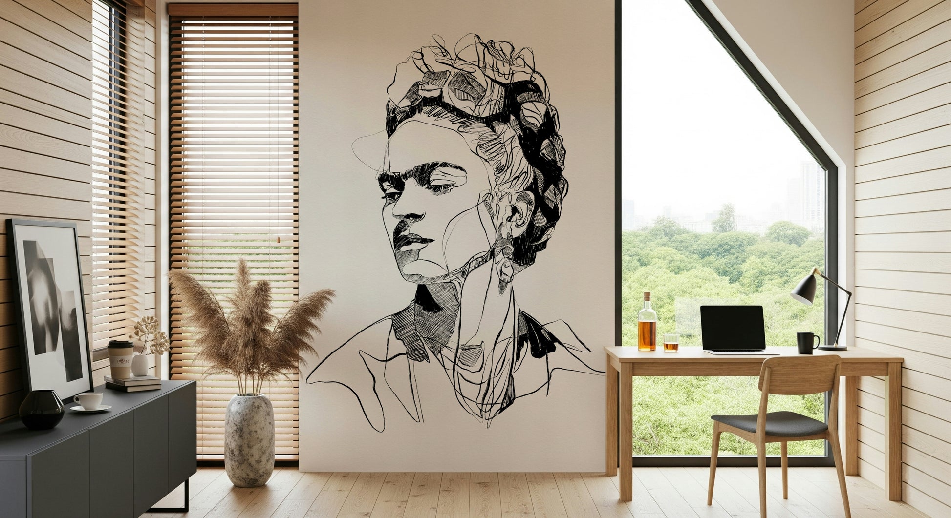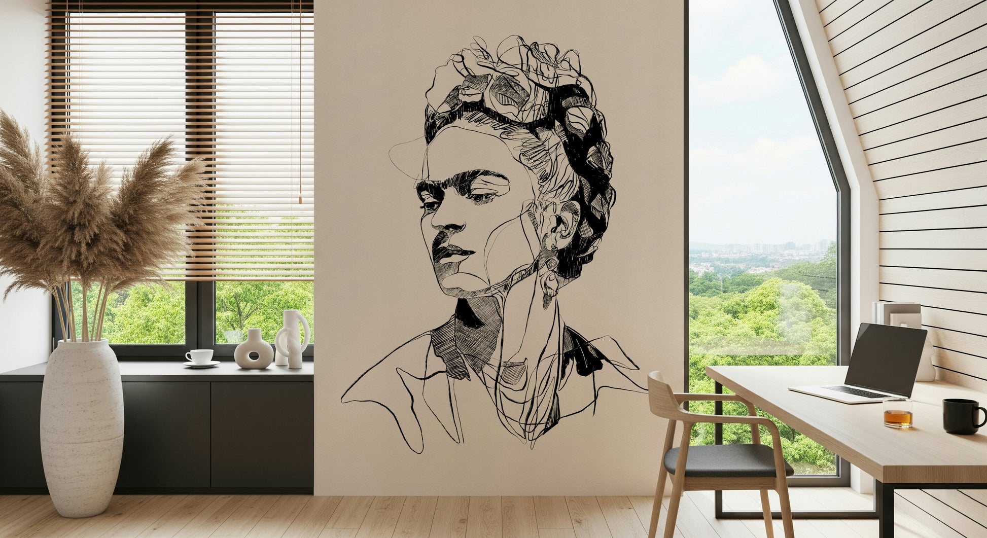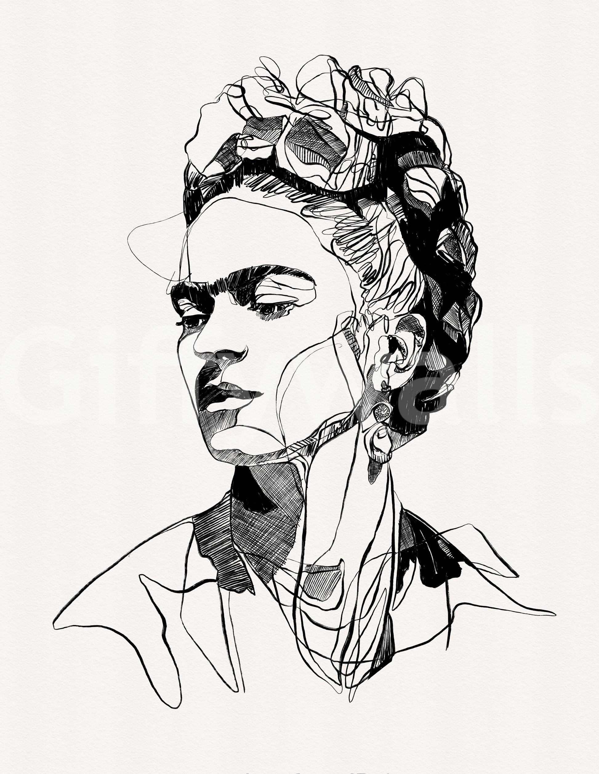 Transform your interiors with a unique touch of artistic expression with this striking wall art. The bold, intricate line work captures the essence of modern elegance, inspired by the vibrant spirit and resilience of an iconic Mexican muse. Evoking floral crowns, vivid dreams, and the poetry of self-expression, this piece celebrates the timeless strength and beauty of individuality. Perfect for adding character and intrigue to any room, it harmonises effortlessly with both contemporary and classic décor.